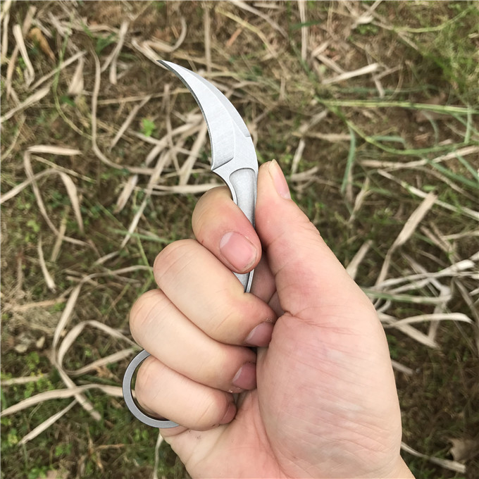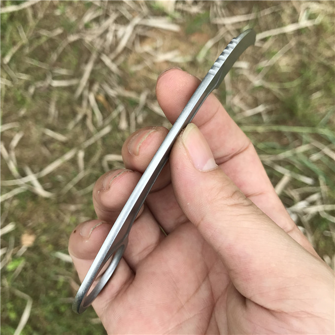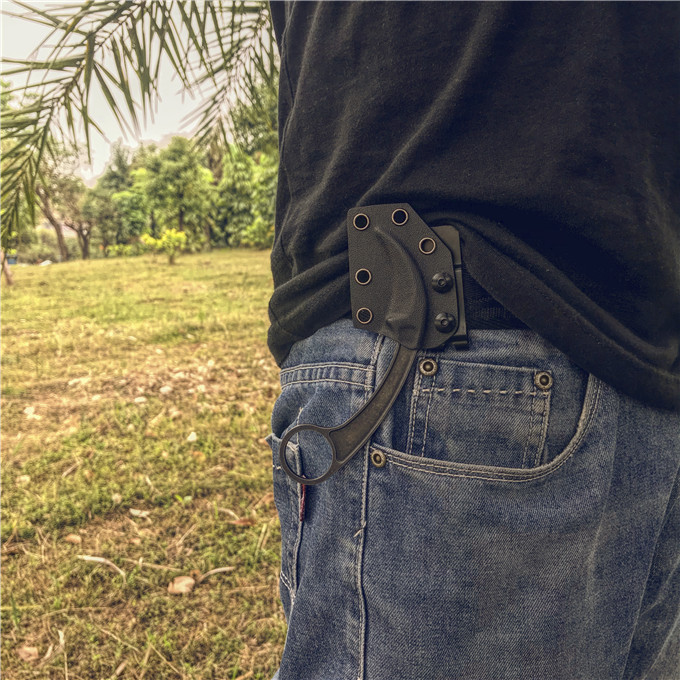 其精致小巧的造型使其可以隐藏在身上任何地方携带。尾指环设计可以更好的控制这把刃,保证使用时不会轻易脱手,而且尾环设计作用不仅于此,还可以让使用者更快速的改变刃口朝向,从意想不到的角度进行攻击。K鞘带钢夹,携带方便,周边CNC加工圆边,手感极佳。户外求生防身,日常把玩,开快递包裹