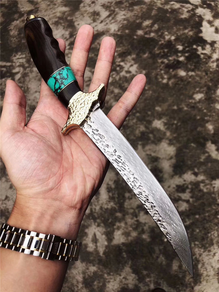 整把刀给人感觉正气凛然,按照出口标准生产制作,「手工锻打vg10大马士革钢」真实测试硬度为60HRC,经各种暴力测试,刃口于然保持完好无损,综合性能爆表,手柄选用进口黑檀木材制作,柄材木质使用时间越长越得心应手,老师傅精磨手工开刃,每一把都锋利无比,坚不可摧