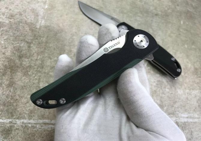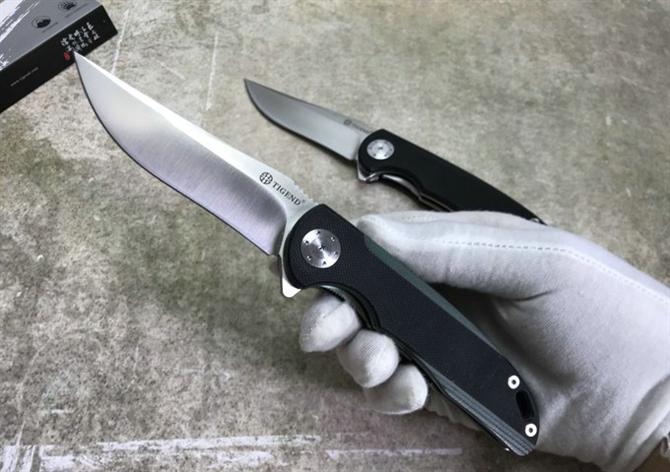 长风CF1011折刀 全长:21.3cm 刃长:9.3cm 柄长:12.3cm 刃宽:3cm 刃厚:3.Cm 刃材:D2 重量:200g(含包装) 硬度:59HRC 表面:砂光 柄材:G10