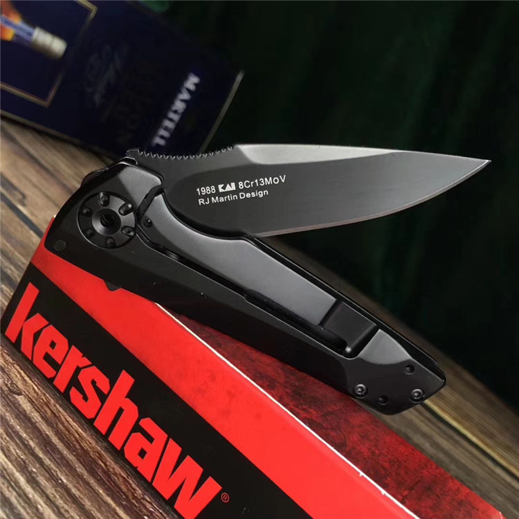 卡秀1988快开折刀 全长:17.5厘米 刃长:7.6厘米 柄长:9.3厘米 刃材:8Cr13MoV不锈钢 叶片形状:落点叶片 表面:黑色氧化 柄材:黑色氧化涂层不锈钢锁 机构:框架枢轴 组件:KVT滚珠轴承系统 袖珍夹:深进小费,右/左进 重量:3.7盎司(105克) 设计师:RJ马丁