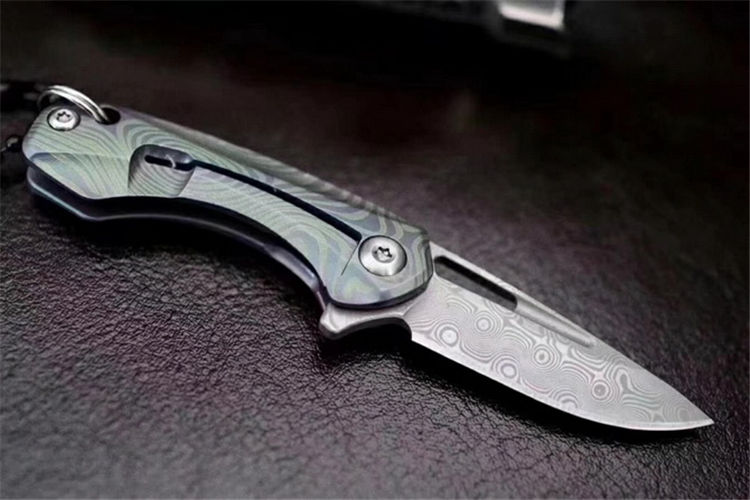 野人大马士革迷你吊坠折刀 全长:95mm 刃长:40mm 刃厚:2.5mm 刃材:大马士革钢 柄材:钛合金 硬度:60±1HRC(真空深冷热处理) 精美、实用、锋利,价格实惠,物超所值,你值得拥有