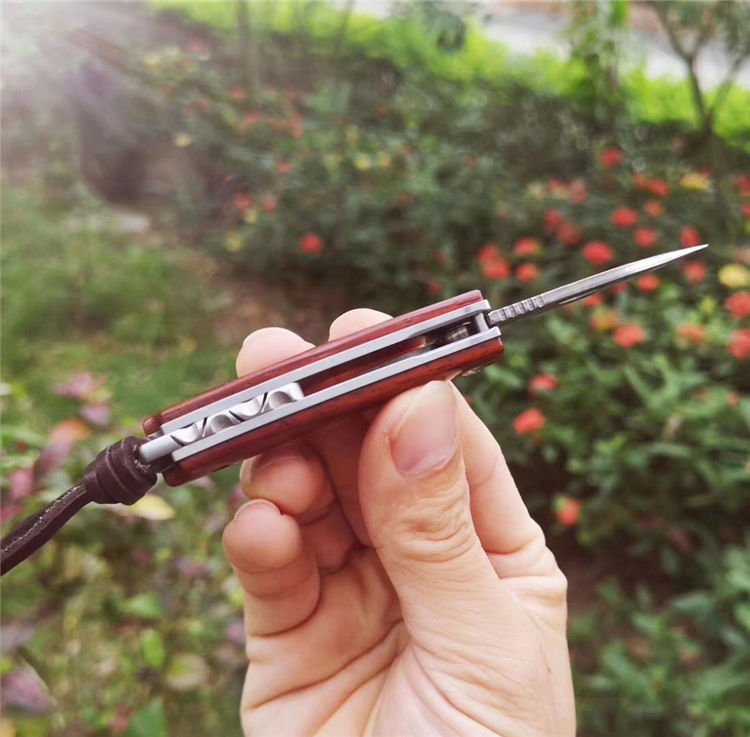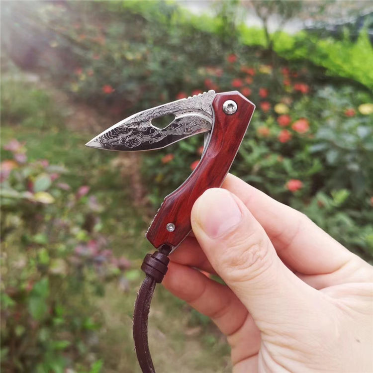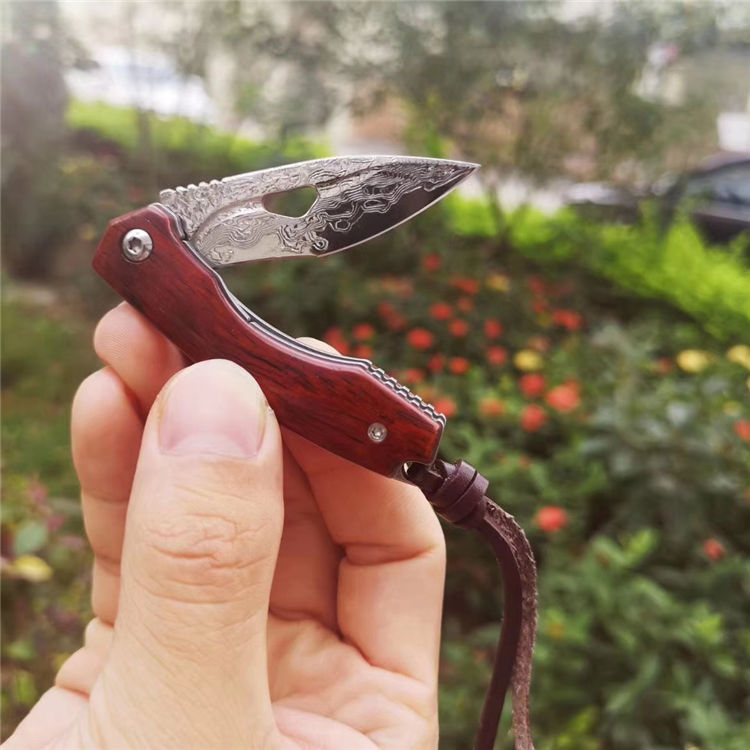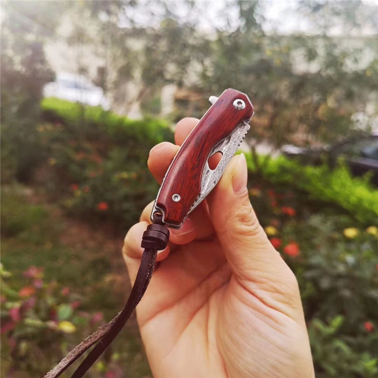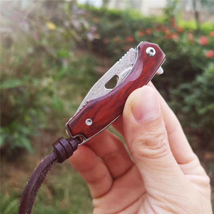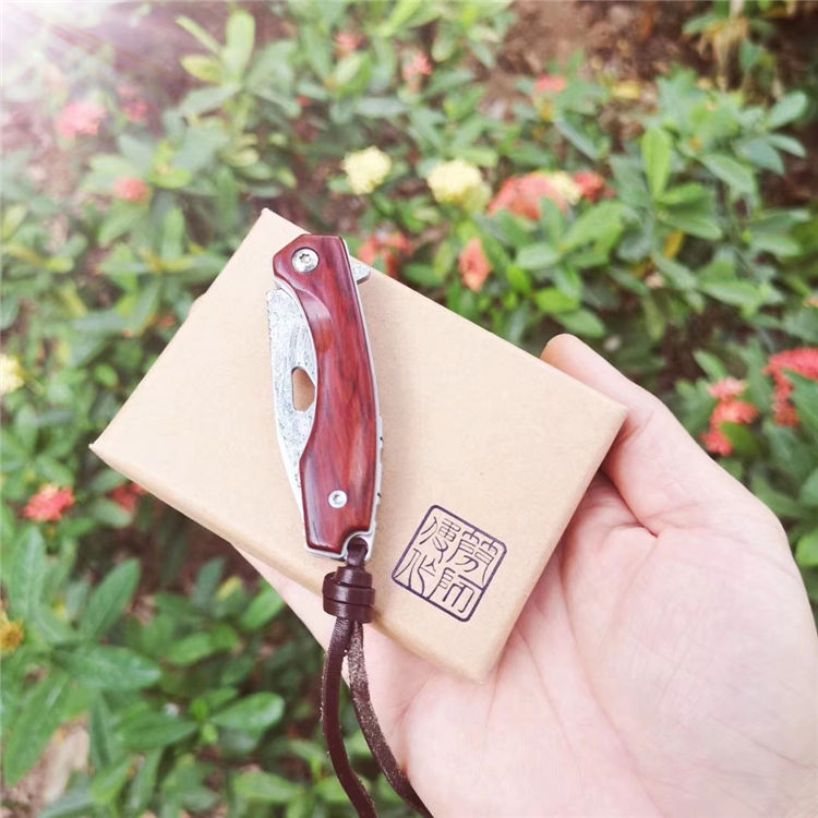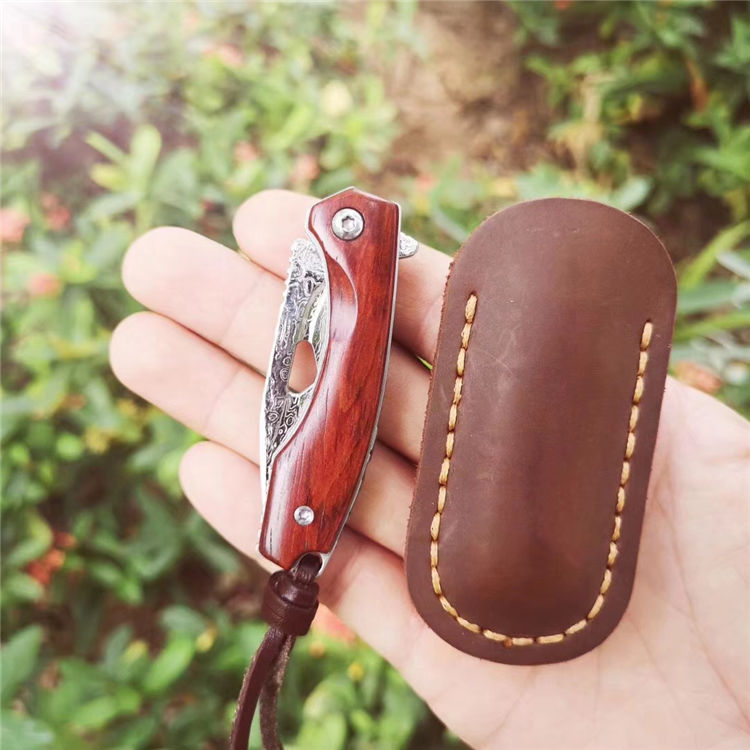 简师傅大马士革小魅龙折刀 全长:12.5cm 刃长:5.6cm 刃厚:2.5mm 硬度:59HRC 配置头层牛皮手工缝制皮套,头层牛皮尾绳,复古礼盒包装带LOGO 魅力四射,刀柄采用老挝微粒黄檀木,抛光细腻,握感舒适,尖尖的刀刃选用2.6mmVG10大马士革锻打祥云纹,锋利且坚固,陶瓷滚珠轴承快开系统,小巧实用,刀背龙骨精细挫花更上档次,细节打磨处理精细