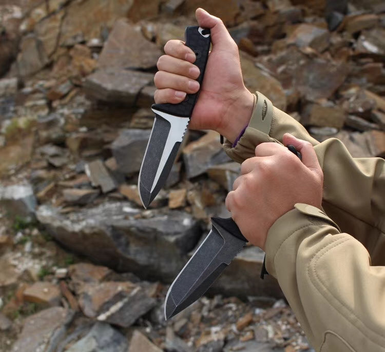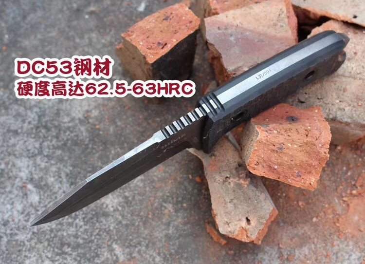 百炼冷刃DC53钢直刀 总长:23cm 刃长:12cm 刃厚:6mm 刃宽:3.6cm 钢材:进口DC53钢 硬度:61-63HRC,真空深冷热处理 柄材:战术纹G10,手感防滑效果很好 刀套:进口战术K鞘 真材实料进口DC53钢,硬度达到62-63HRC