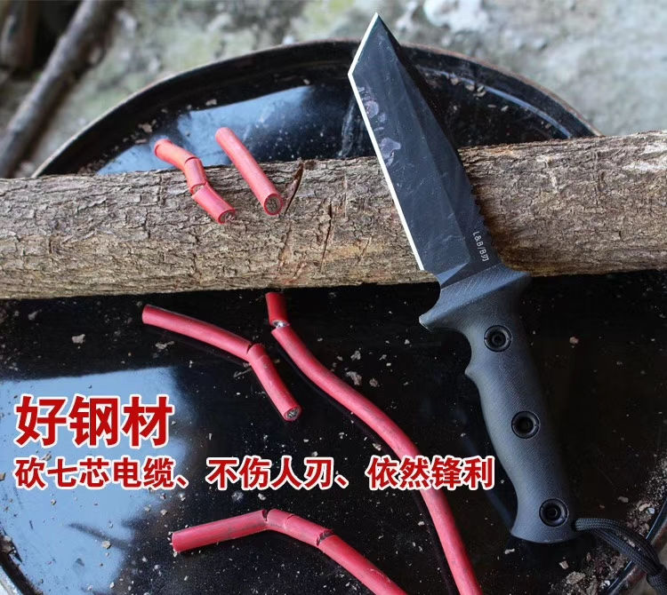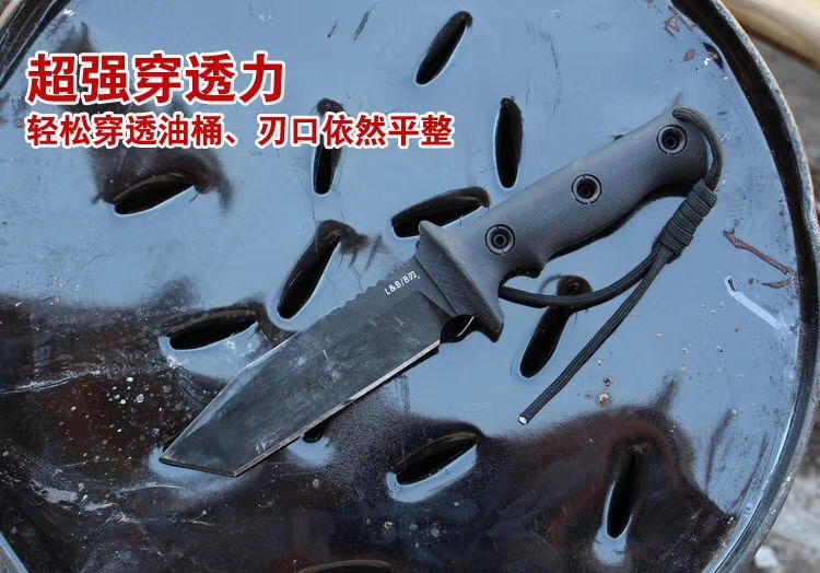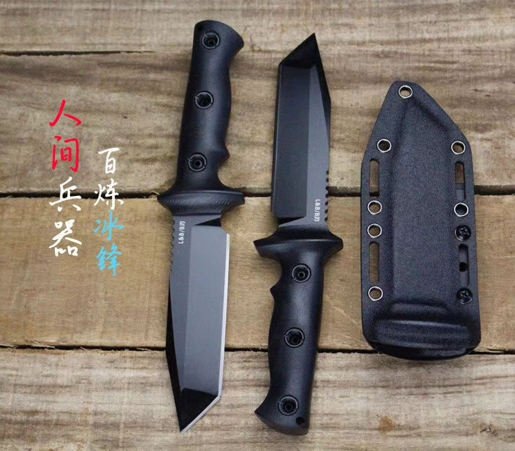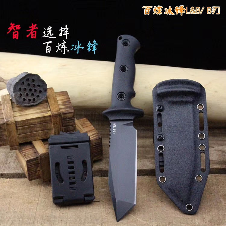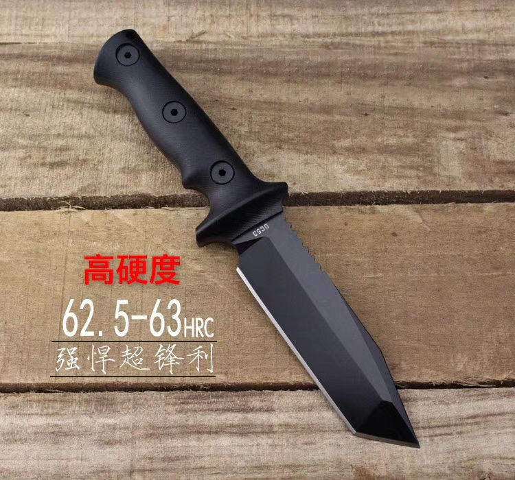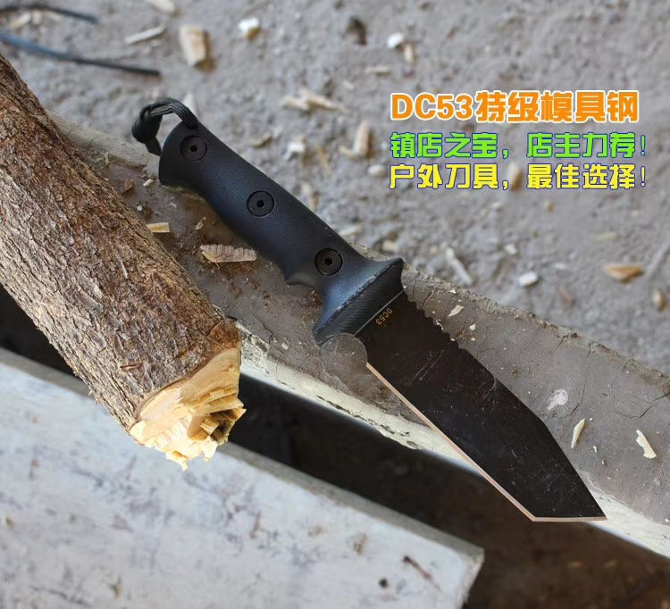 百炼冰锋一代DC53钢直刀 总长:25.5cm 刃长:13cm 刃厚:6mm 刃宽:3.5cm 钢材:进口DC53钢 硬度61-63HRC,真空深冷热处理 柄材:G10 刀套:进口战术K鞘 真材实料进口DC53钢,硬度达到62-63HRC
