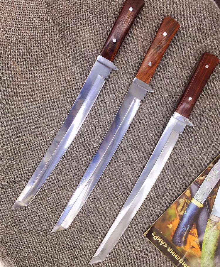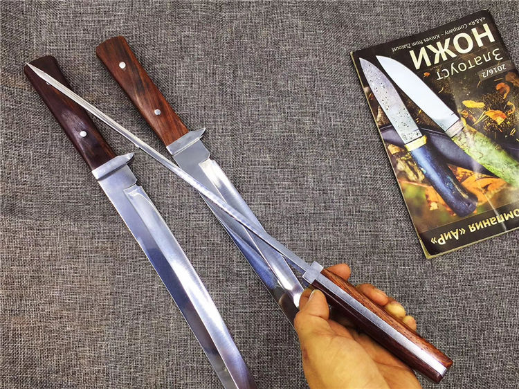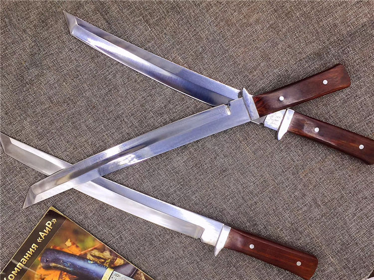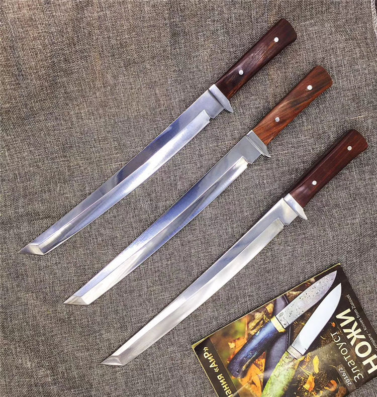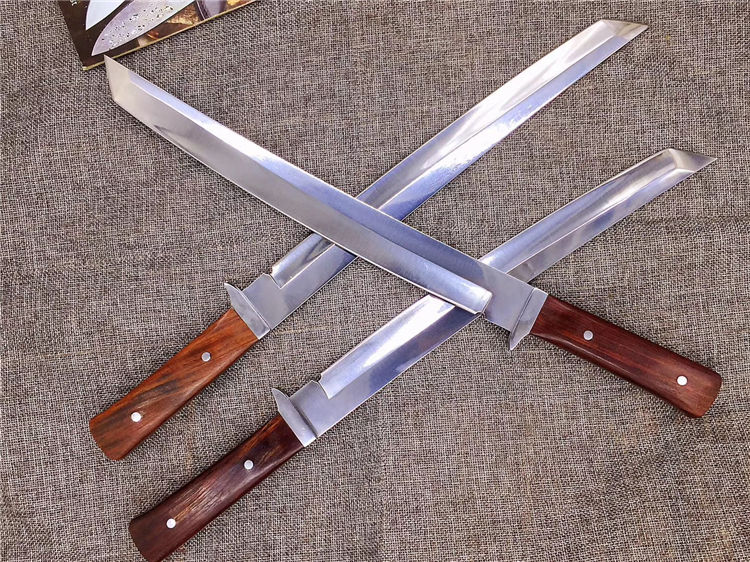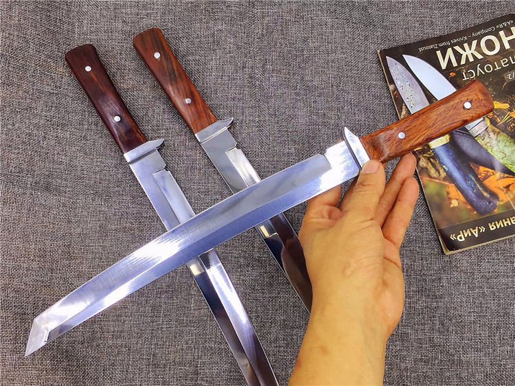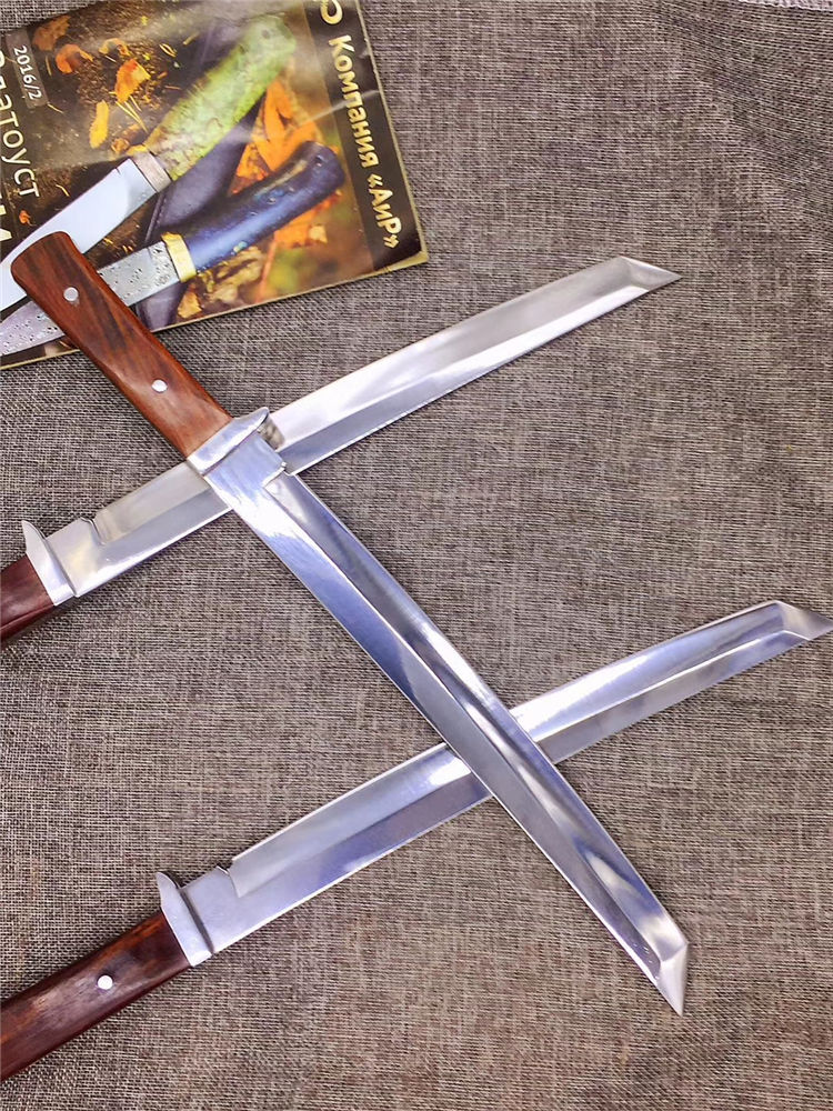 锻师手工锻造,锻打,真空油冷淬火,超高硬度,达到60hrc,全手工开刃,锋利,一体龙骨,刀柄名贵酸枝料,配合粗旷刀面