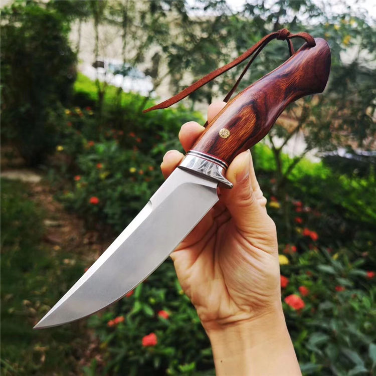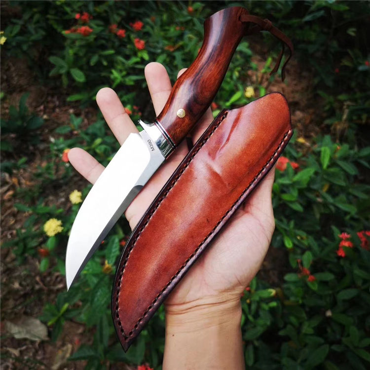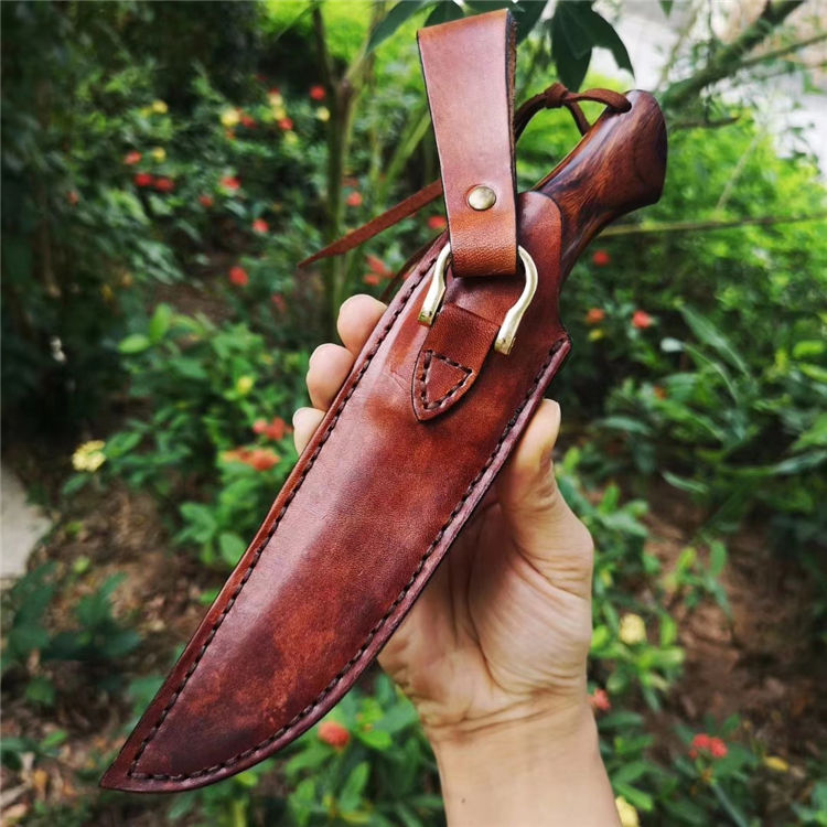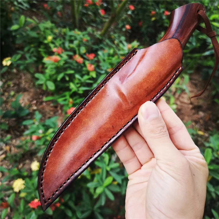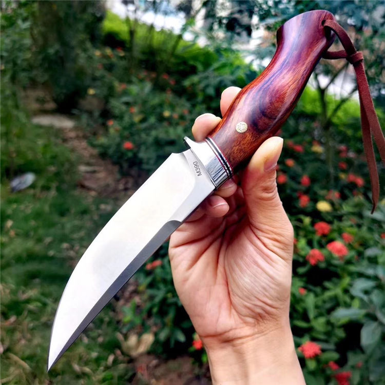 采用奥地利进口神钢M390粉末钢,公认的战术粉末刀具钢,韧性,耐用性,防锈性多种特点!户外活动中更安全顺手,手工缝线植鞣牛皮刀鞘采用极简表面效果更加简约大气非凡!精选进口沙漠铁木,高硬度高密度,实用!收藏送礼不二之选。整刀手感出色,分量配重比例好,各配件都是精密线切割开料,装配工艺精湛,不可多得的精品战术猎刀