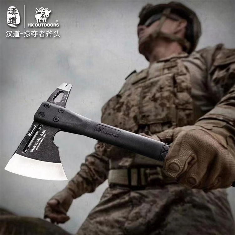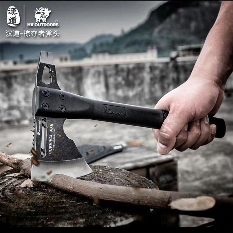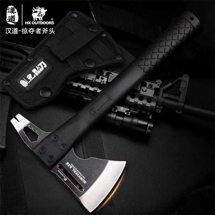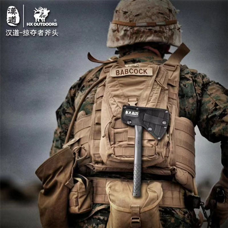 汉道掠夺者斧头 总长:30.7CM 刃长:7.9CM 刀刃:440不锈钢 硬度:58度 手柄:尼龙加纤手柄 用材440不锈钢,设计斧刃、起钉器、六角螺母(8/10/12号),尼龙加纤手柄,柄尾设计防滑手纹,配备尼龙斧鞘,可佩挂携带,护刃安全