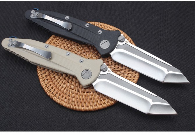 微技术三角洲部队战术折刀 全长:229mm 刃长:99mm 柄长:130mm 刃宽:28mm 刃厚:4.0mm 刃材:D2(深冷处理) 刀重:155g 硬度:58-60HRC 表面:沙光拉丝 柄材:G10 其他:配彩盒和出世纸