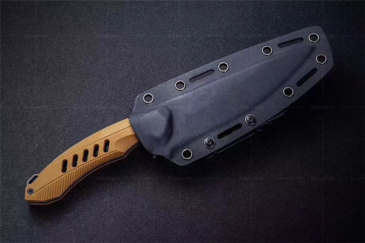 高端F1直刀 钢材:CPM-D2 全长:26cm 刀重:143g 配:kydex刀鞘 硬度:58~60HRC,真空热处理。刀口性能稳定,韧性十足 四色可选。能满足100%户外活动需求