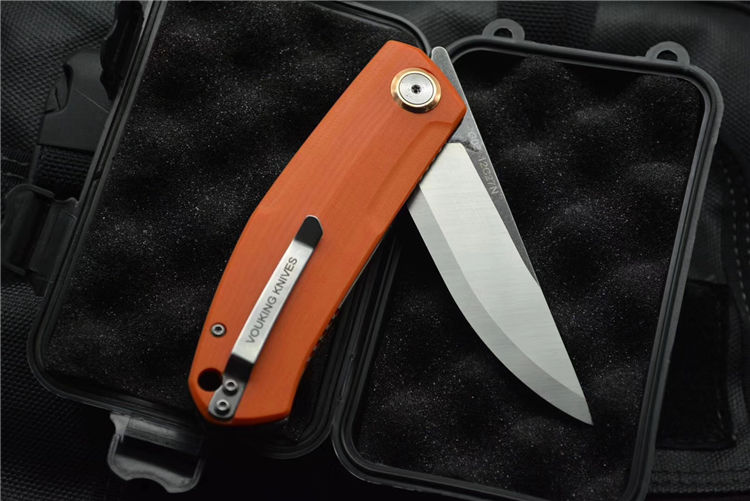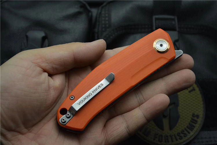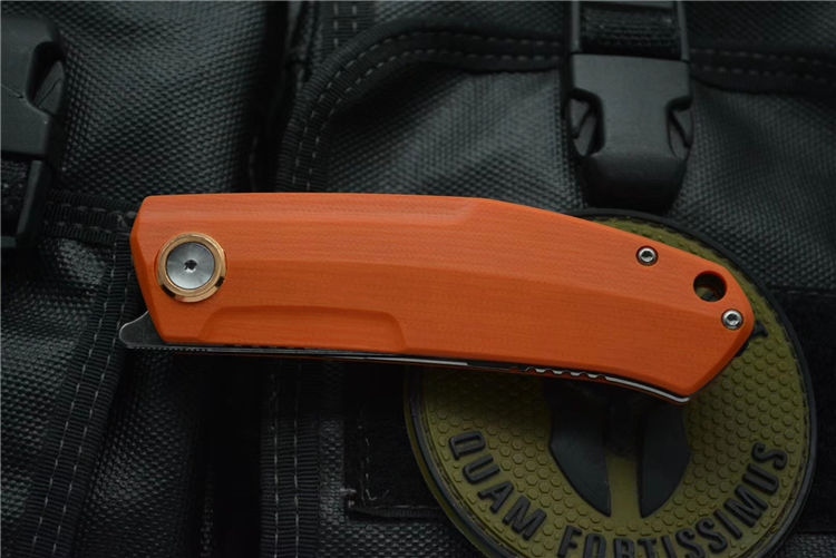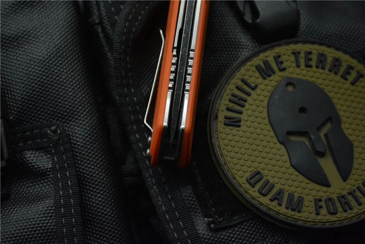 正品时代G02折刀 全长:19.9cm 闭合:11.5cm 刀片长:6.8 cm 刀片宽:2.6cm 刃厚:3.2mm 刃材:山特维克12C27(刀刃是斯堪开刃,切割流畅感好,锋利度好) 硬度:57-59HRC(真空油淬热处理) 柄材:G10轴承:陶瓷珠KVT系统 净重:134g
