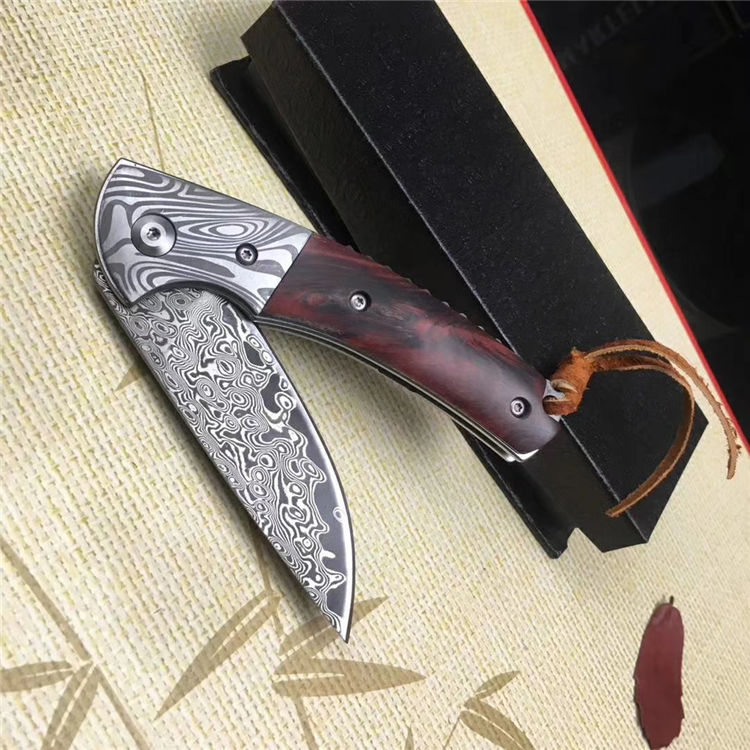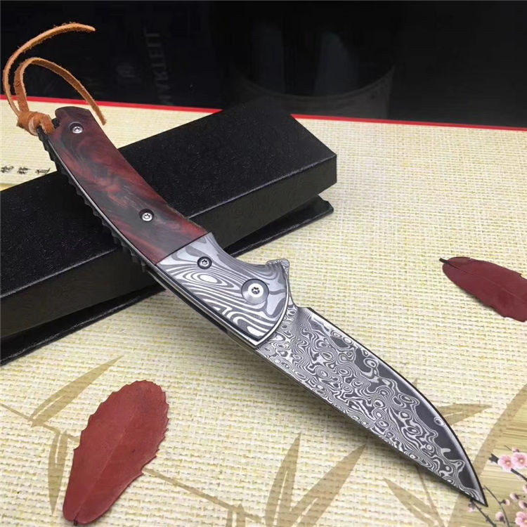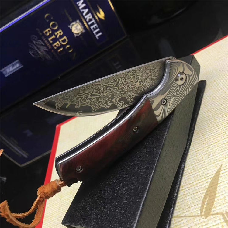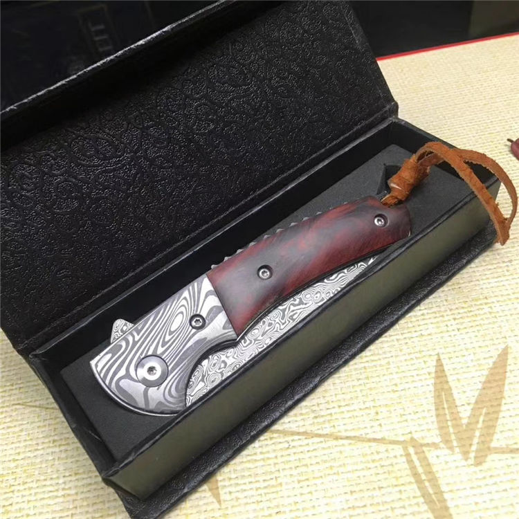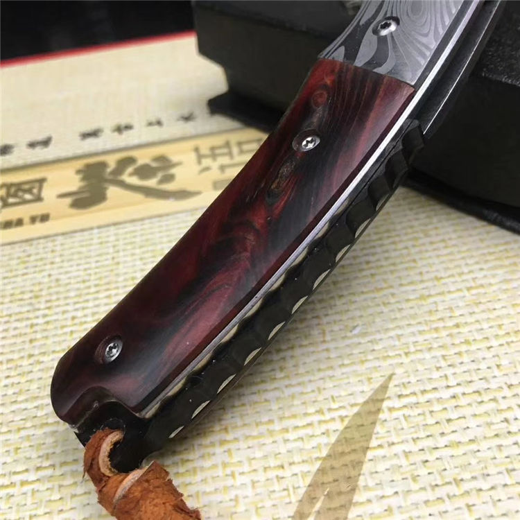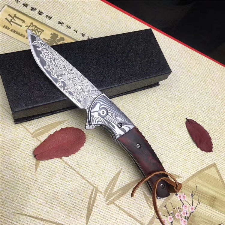 大马士革霓虹轴承折刀 全长:18cm 刃长:8cm 柄长:9.5cm 刃厚:2.0mm 刃材:大马士革钢 硬度:57HRC 刀柄:大马士革,酸枝木 表面:大马士革花纹 锁定方式:侧锁 重量:180.0克 备注:礼品盒