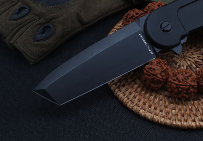 极端武力EXTREMARATIOBF2RCT战术折刀 总长:211mm 刀片长度:86mm 刀片厚度:3.1mm 刀片处理:黑色镀钛 硬度:58HRC 净重:147克 刀片材质:N690 手柄材质:6061-T6铝合金,CNC 轴承系统 配礼品盒
