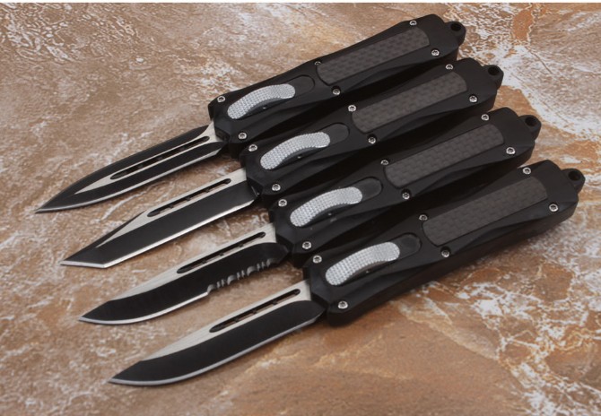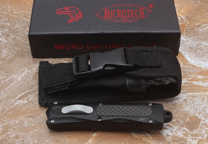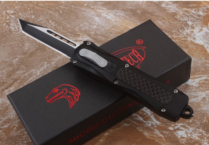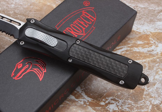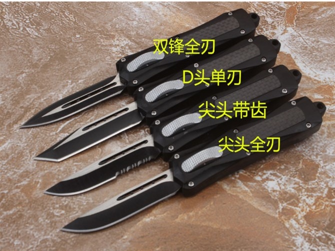 伤齿龙316直出跳刀 品牌:伤齿龙 全长:17.5cm 刃长:7cm 刃厚:2.8mm 刃材:440 硬度:57HRC 刀重:134g 毛重:183g含包装 表面:氧化黑 柄材:锌铝合金+碳纤 刀鞘:尼龙 锁闭:直出弹簧刀