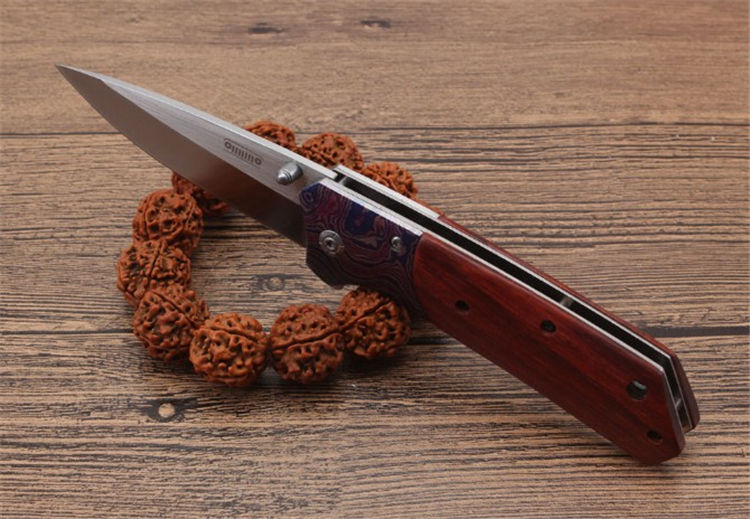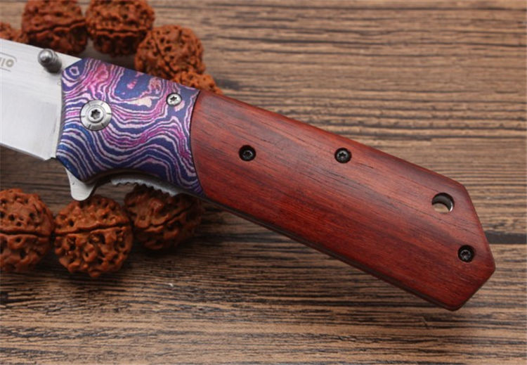 吉普DA135快开折刀 全长:20.1cm 刃长:8.8cm 柄长:11.7cm 刃宽:2.6cm 刃厚:2.9mm 刃材:440C 重量:158g(含包装物) 硬度:57HRC 表面:沙光伴拉丝处理 柄材:钢头三D打印图案+天然花枝木 锁型:线锁 其他:配彩盒,配刀背夹