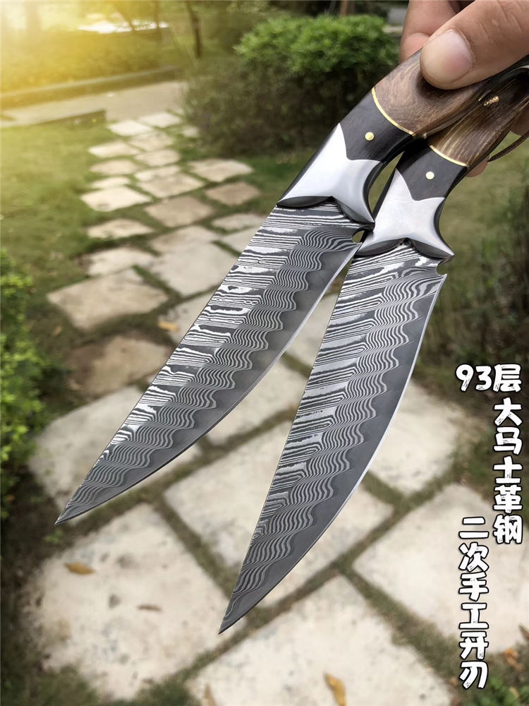 进口锻造大马士革钢(雷神纹)93层,真空热处理,纯手工开刃超级锋利(视频测试可见)一款高端手工制作精品