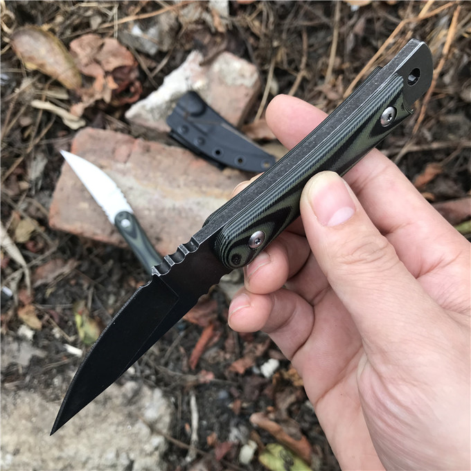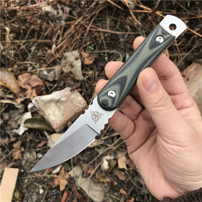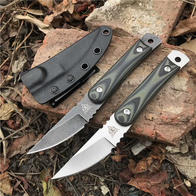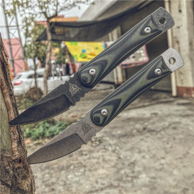 TOPS尖端SSS07 Scalpel“解剖”小直刀 型号:SSS07 全长:18cm 刃长:6cm 刃材:D2 刃宽:2.3cm 硬度:60--61HRC(真空油冷热处理) 表面:石洗或沧桑石洗 刃厚:0.5cm 柄材:双色G10 重量:150g 配黑色礼品盒