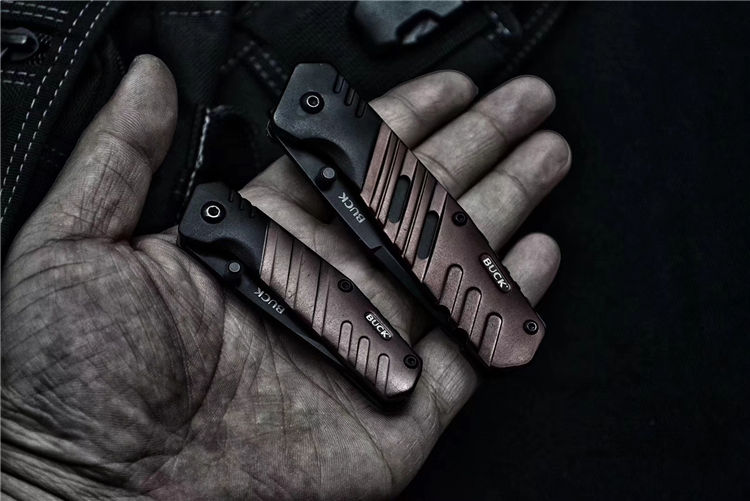 代工巴克848/849折刀 全长:13.3(小)17(大)cm 刃厚:3.5mm 刃材:8Cr13 硬度:57-58 重量:54(小)90(大)g 柄材:铝合金 产地:中国代工 小号:65