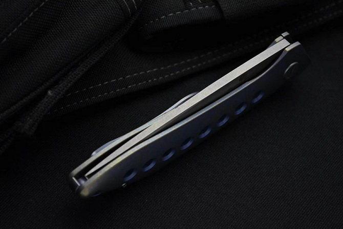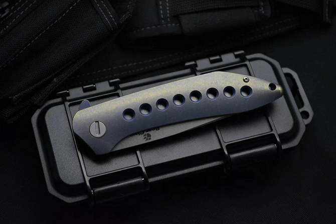 钛合金飞鲨折刀 全长:225mm 刃长:97mm 柄长:128mm 刃厚:4mm 刃宽:27.5mm 刃材:S35VN(100%,S35VN可以测试) 处理材料:钛 叶片处理:石头洗 处理处理:阳极氧化着色 硬度:59-60HRC 系统:球轴承系统 开放:隐藏快速开放系统 净重:155克