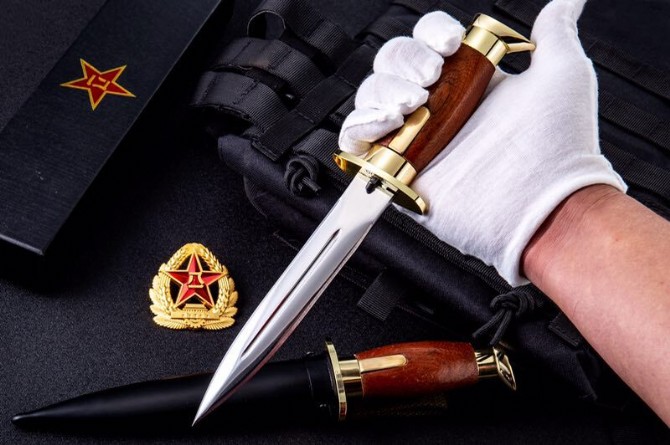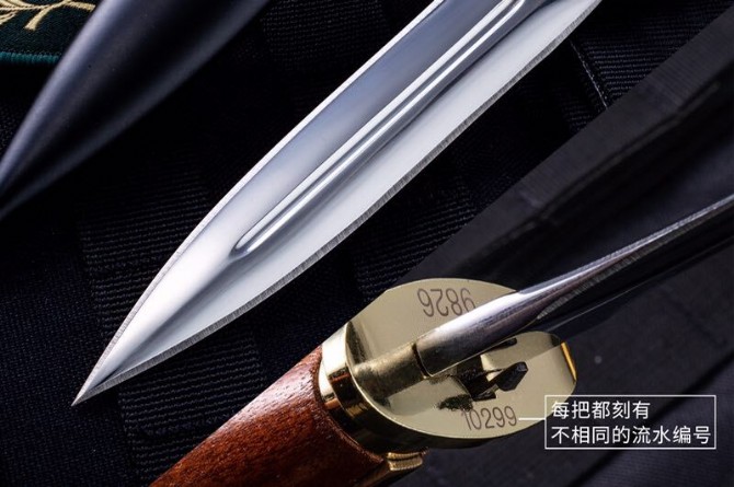 备注:按照原品装有“锁叨开关”功能,叨鞘内镶有木套 入叨鞘后不会摇摆 起到固定作用 。每把都刻有不相同的流水编号 独一无二。是一款收藏价值极高 军迷渴望已久的军用刺叨