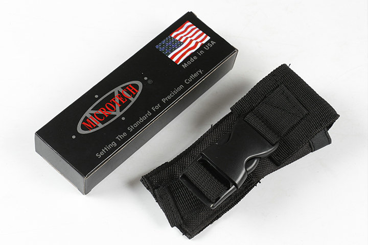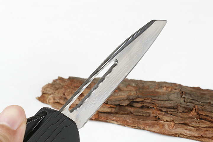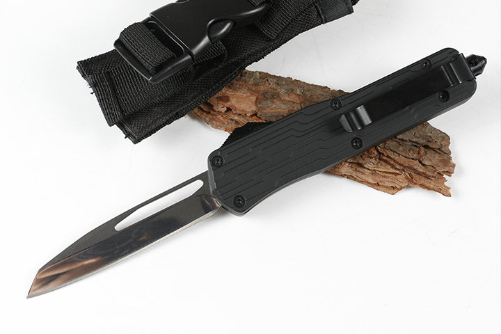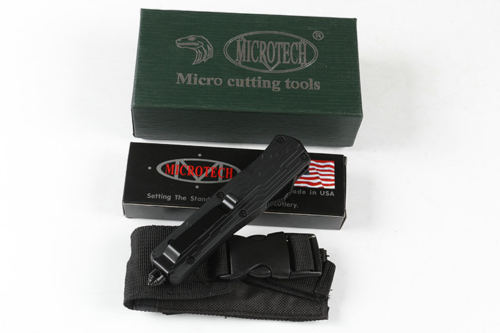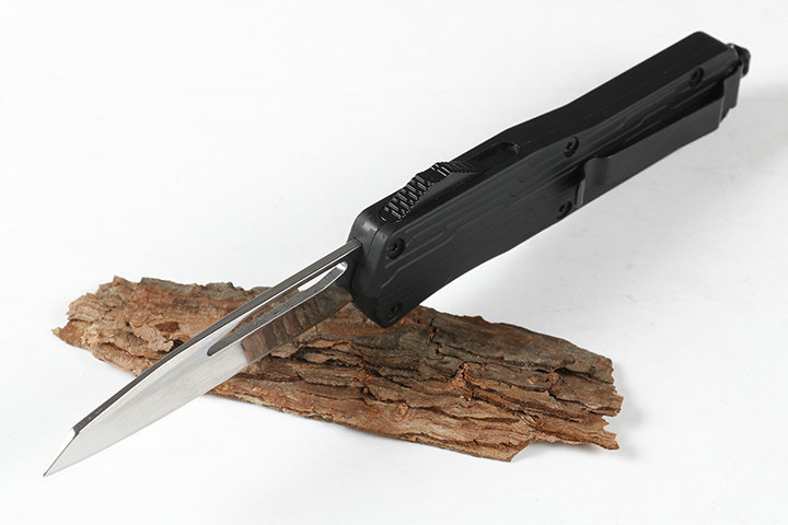 微技术伤齿龙E07单锋直出跳刀 类型:直出弹簧刀 品牌:MICROTECH.微技术-伤齿龙 全长:23.0cm(含尾锥长度) 刃长:9.0cm 刃厚:3mm 刃材:440 硬度:57HRC 刀净重:225.0克 总重量:335.0克(含包装物) 表面:镜光 柄材:锌铝合金 刀鞘:尼龙 锁闭:弹簧直出 备注:带背夹和玻璃撞针