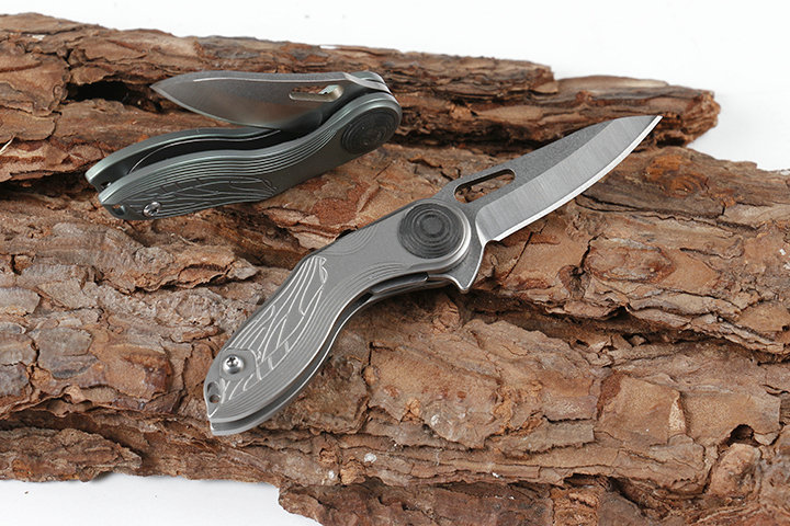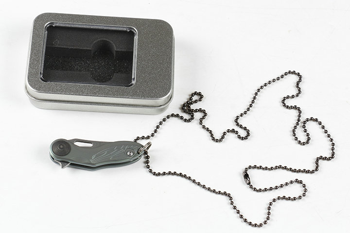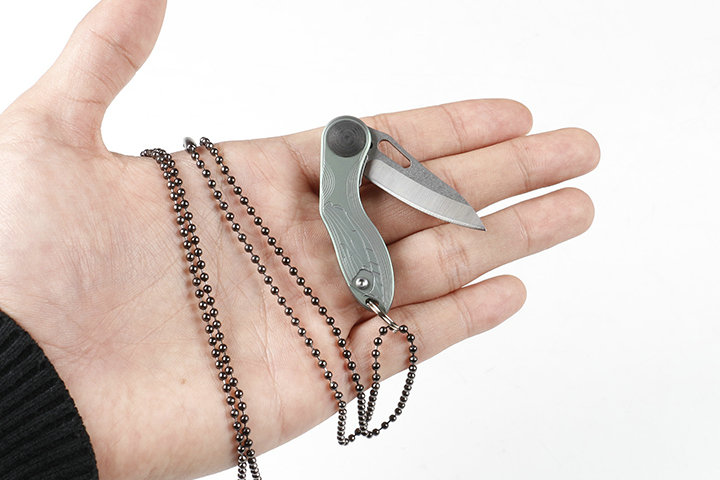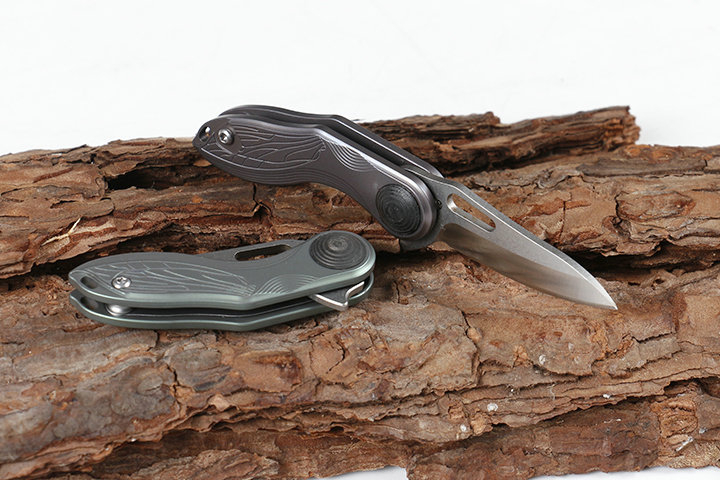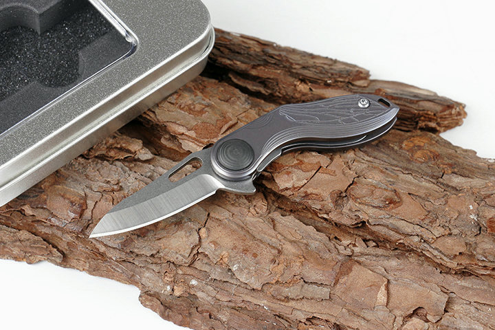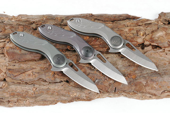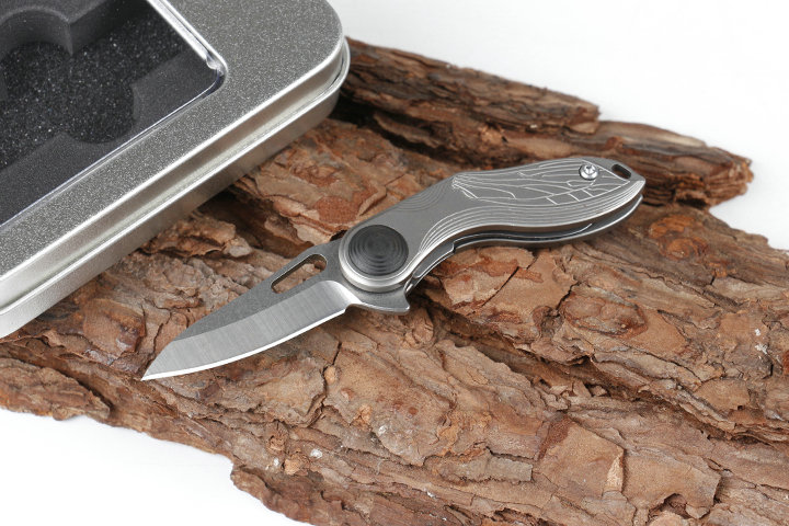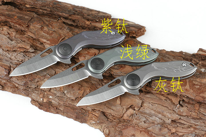 D2钢钛柄大眼纹项练折刀 全长:9.2cm 柄长:5.2cm 刃材:D2 柄材:碳纤维+TC4钛合金CNC,三色任选,下单请注明 刃长:4.0cm 刃厚:2.1mm 宽度:1.4mm 硬度:58HRC 垫片:内置轴承 螺丝:416L不锈钢 背夹:TC4钛合金 重量:63克(含包装物) 包装:铁盒装,送项练一条 产地:中国