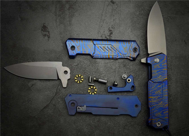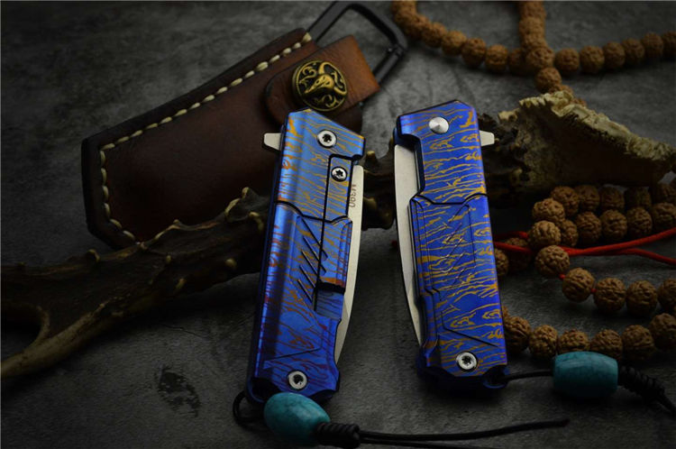 小金钢m390粉末钢快开陶瓷轴承折刀震撼上市,自主设计开发,质量保证,进口奥地利m390粉末钢。手柄采用TC4钛合金,表面烤亮蓝色激大马纹工艺设计。陶瓷轴承结构,开合顺畅,专业真空热处理,硬度在60-61HRC之间,韧性与保持性防锈性对于m390钢被称为综合性最好的神钢