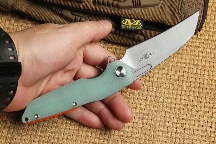 TWO SUN翻转球轴承折叠刀D2刀片 总长:7.716“(196mm) 刀片长度:3.543“(90mm) 切边:3.149“(80mm) 刀片宽度:1.181“(30mm) 刀片厚度:0.157“(4mm) 刀片材质:D2(60hrc) 表面处理:拉丝 手柄长度:4.330“(110mm) 手柄宽度:1.062“(27mm) 手柄厚度:0.492“(12.5mm) 手柄材质:G10 重量:4.4盎司(126.5克) 开瓶器:翻转 系统:陶瓷球轴承