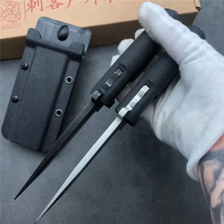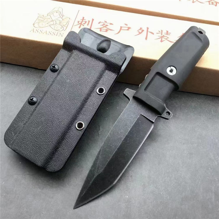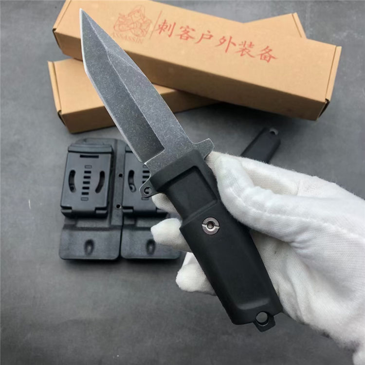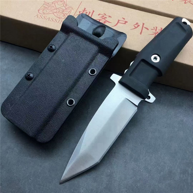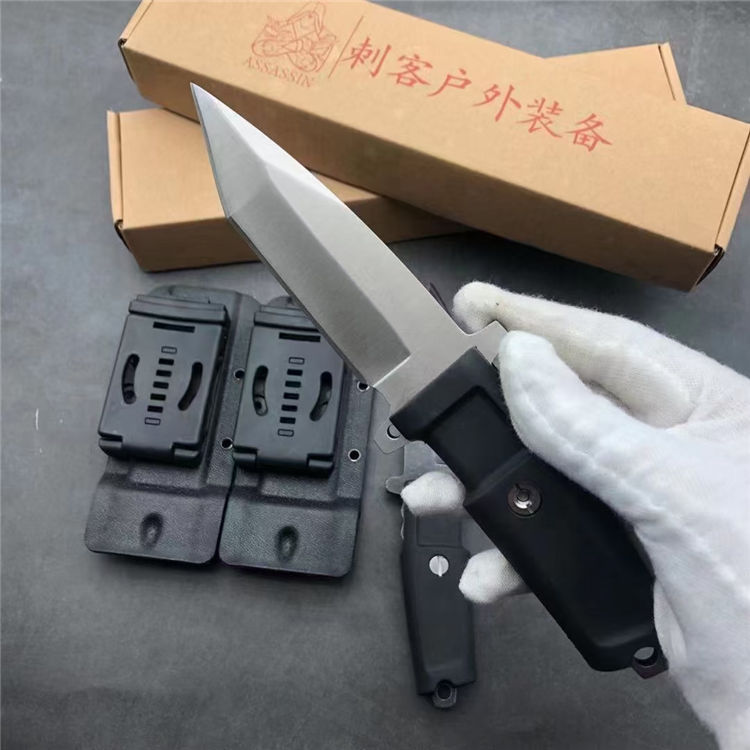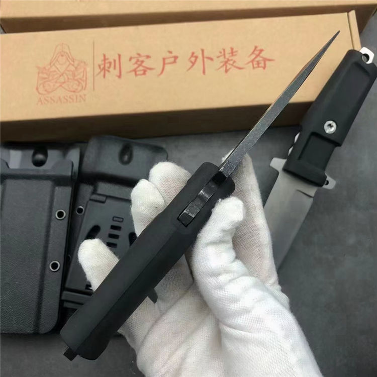 极端武力凌神直刀白刃 全长:22CM 刃长:11CM 刃厚:0.5CM 刃材:D2 刃宽:3CM 硬度:58HRC 柄材:热塑性弹性橡胶 刀鞘:黑色K鞘 重量:287.5克