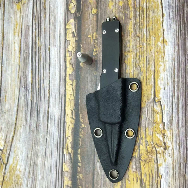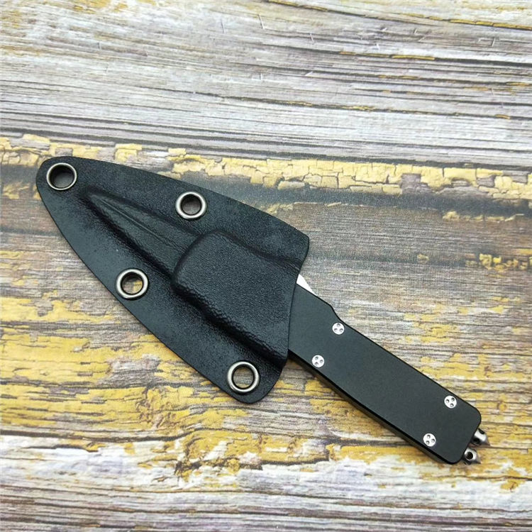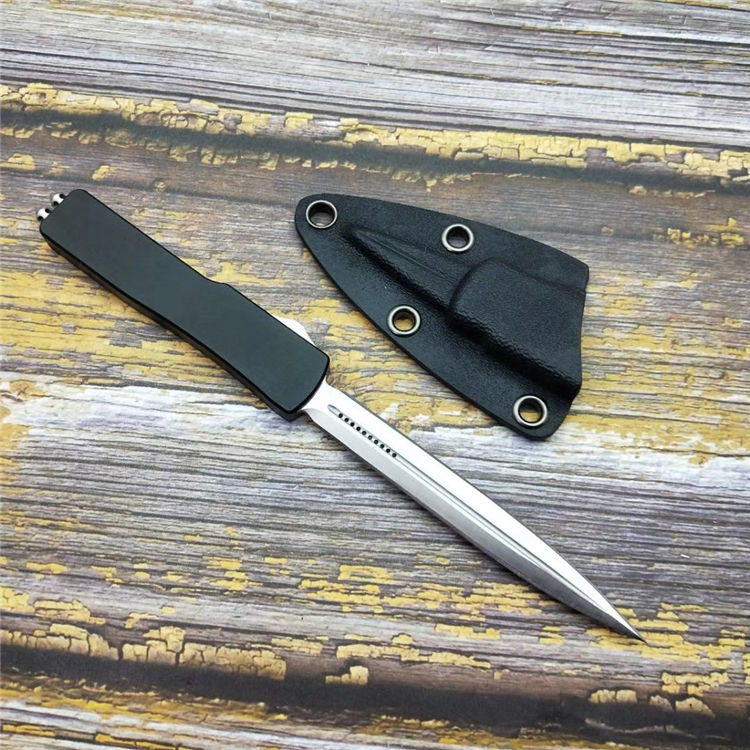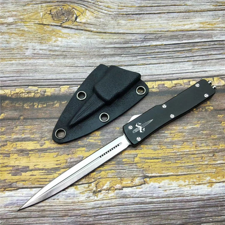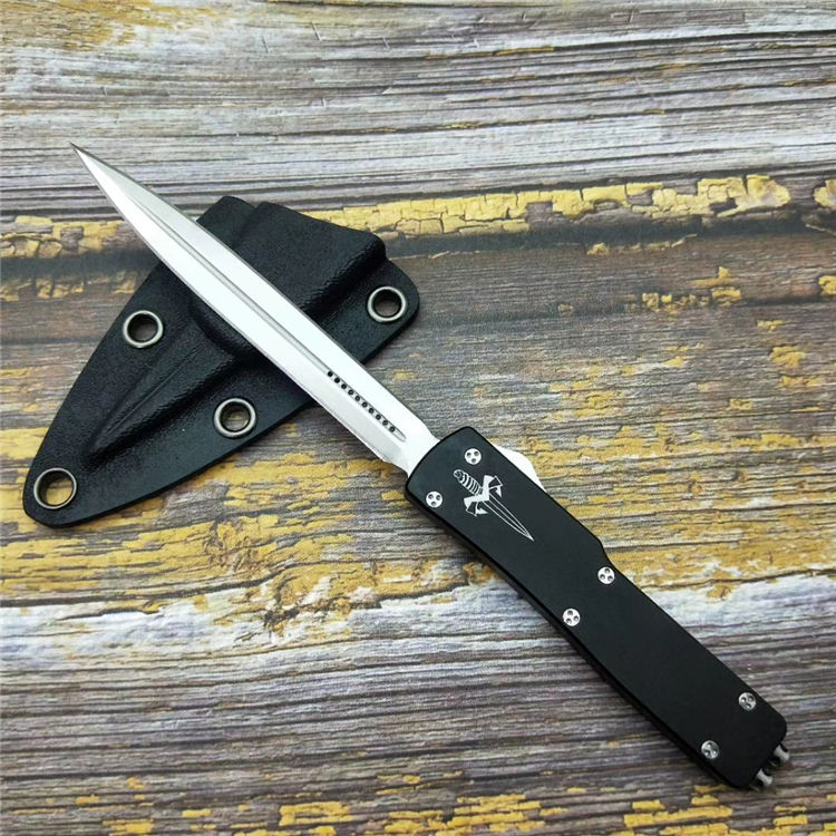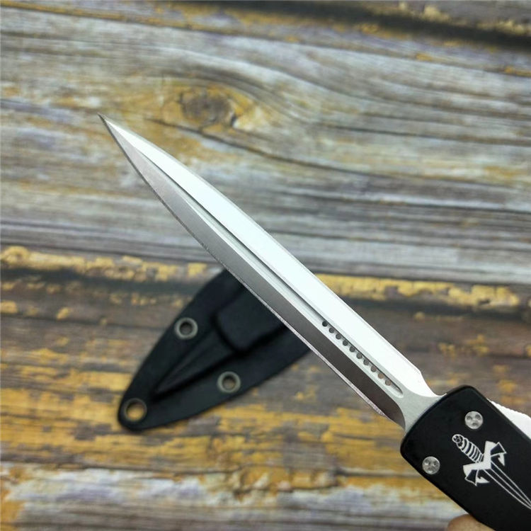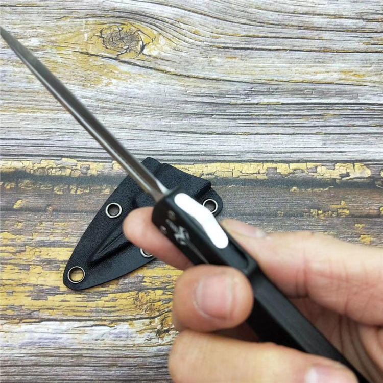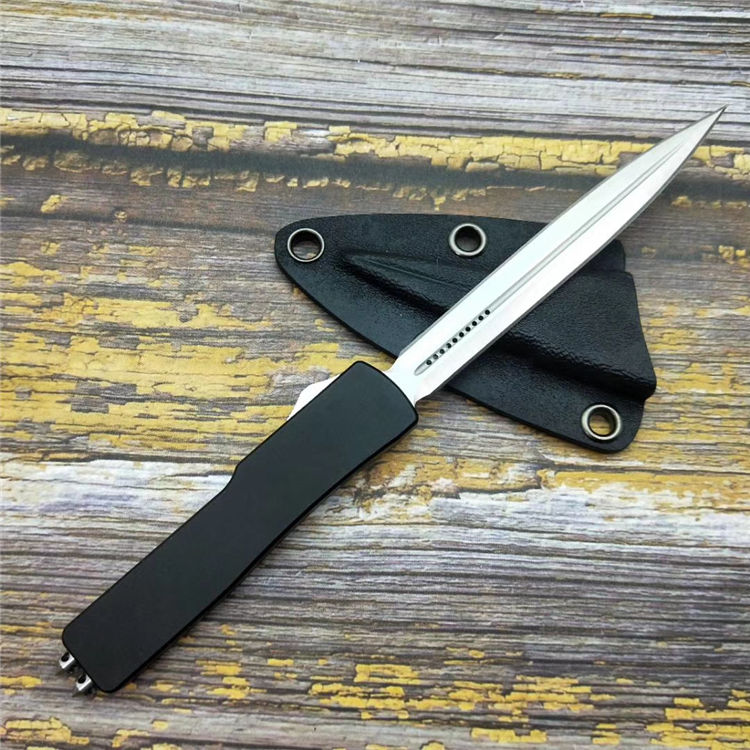 微技术小毒蛇直出跳刀 品牌:MICROTECH美国微技术 全长:18.2CM 刃长:9.5CM 柄长:8.7CM 刃宽:1.2CM 刃厚:0.21CM 刃材:7CR17沙光处理 柄材:铝合金镀因黑钛 刀型:直跳 锁定类型:按钮锁 重量:115克(含包装) 附件:彩盒,送拆刀工具 整刀用CNC,电脑锣,线切割制作而成,手工,精密度非常高,绝对不会缩头,很值得收藏的一把刀