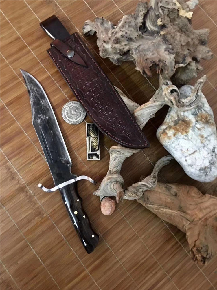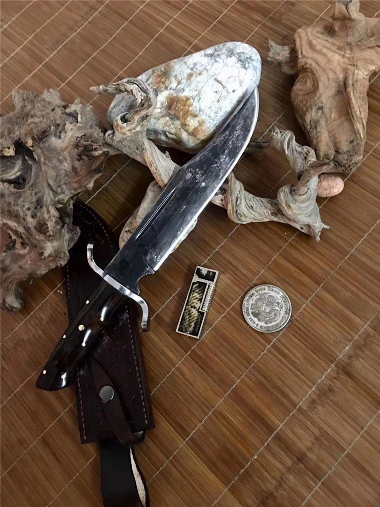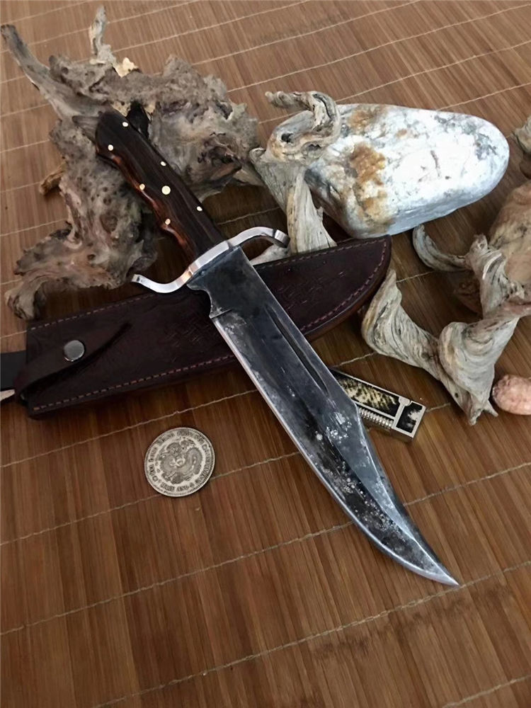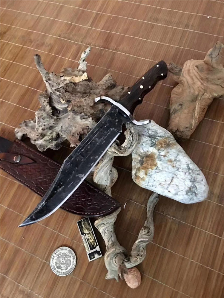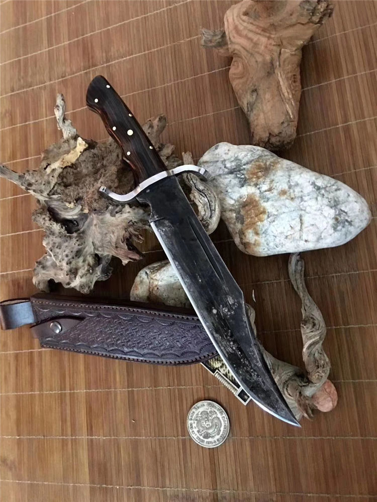 潘大师复古大博伊直刀 总长:36cm 刃长:24cm 厚度:0.5 百分百纯手工,进口俄罗斯高速钢打造非洲紫光檀老木木柄