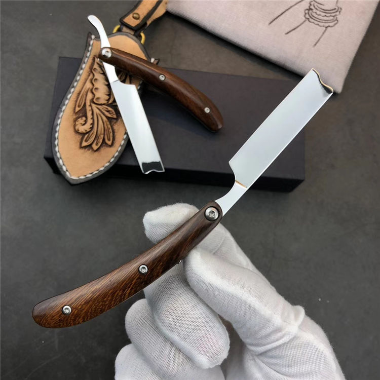 纯手工制作,瑞典进口山特维克14C28N钢,热处理,真空深冷热处理,油淬回火,保持韧性,支持钢材光谱认证,瑞典进口高硬度山特维克14C28N粉末钢,专业真空热处理硬度达到61HRC,不懂钢材性能可以百度下,刀刃水磨手工开刃锋利度极佳,剃个胡子,腿毛完全没压力的,手柄用料进口美国砂铁木材,每把都是独一无二选材制作