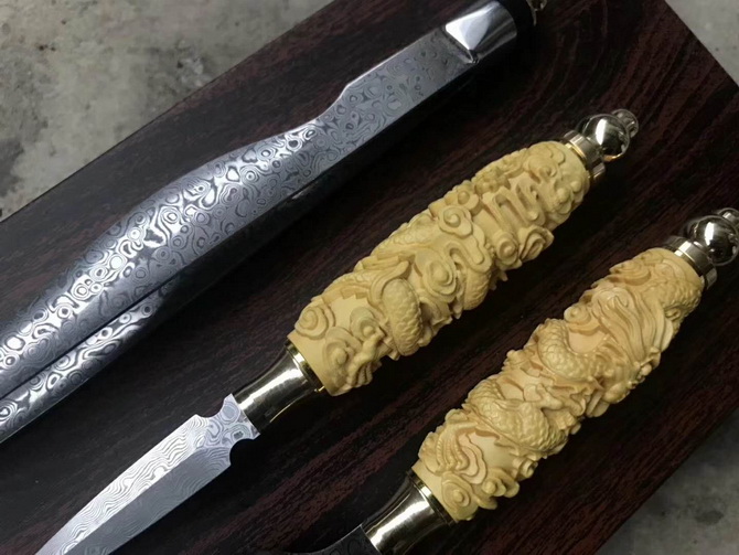 大马士革龙雕三件套装茶刀