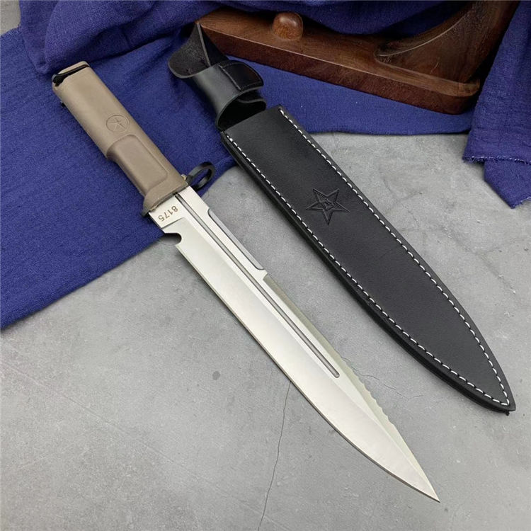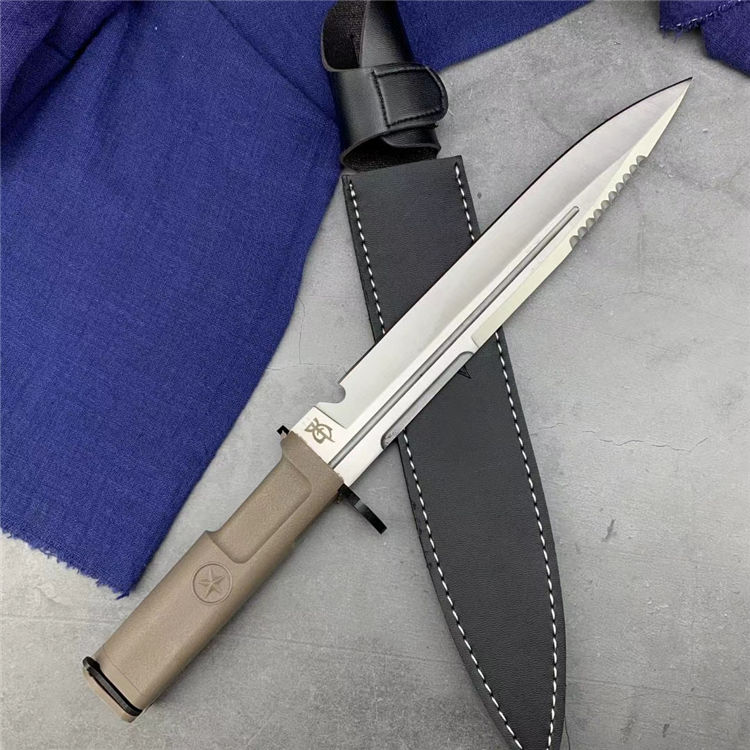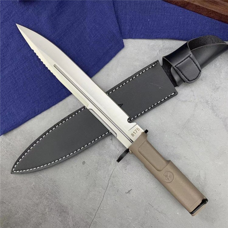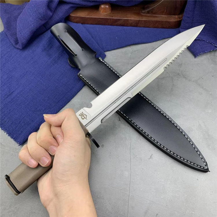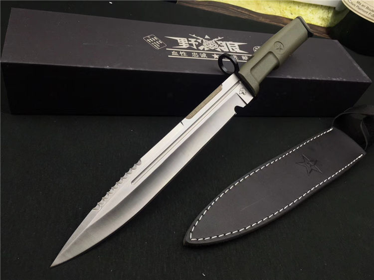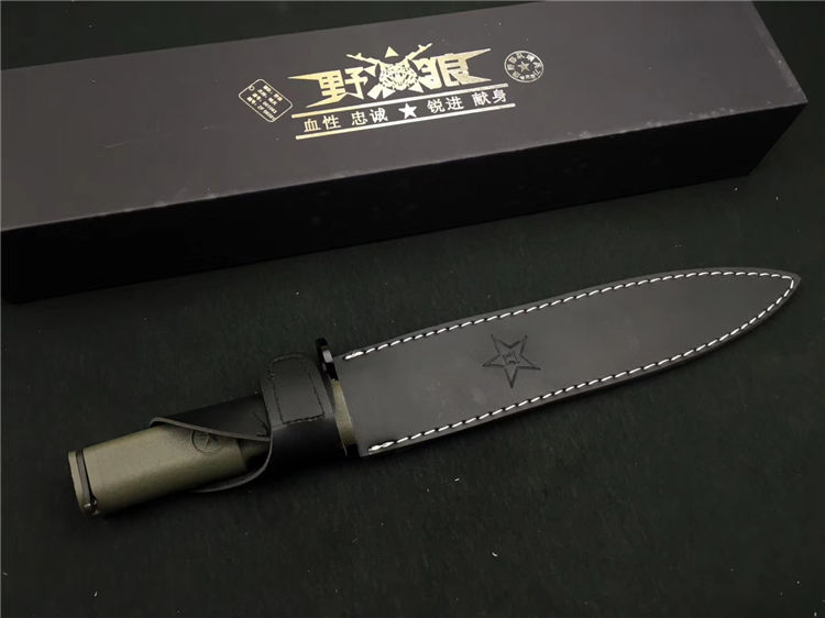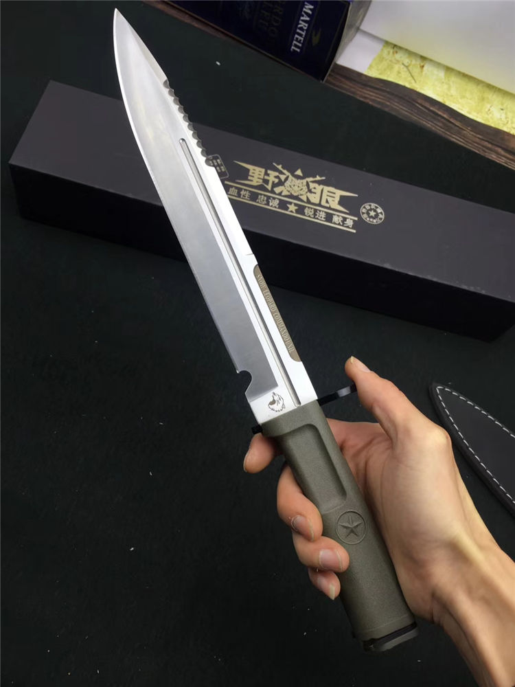 野狼特兰直刀 全长:40cm 刃长:28cm 刃材:5Cr15MoV 附带pu皮刀套 全开锋、特别锋利,削纸,过水瓶随便弄,当兵、退伍军人,户外探险者的最爱,车载、防身之利器