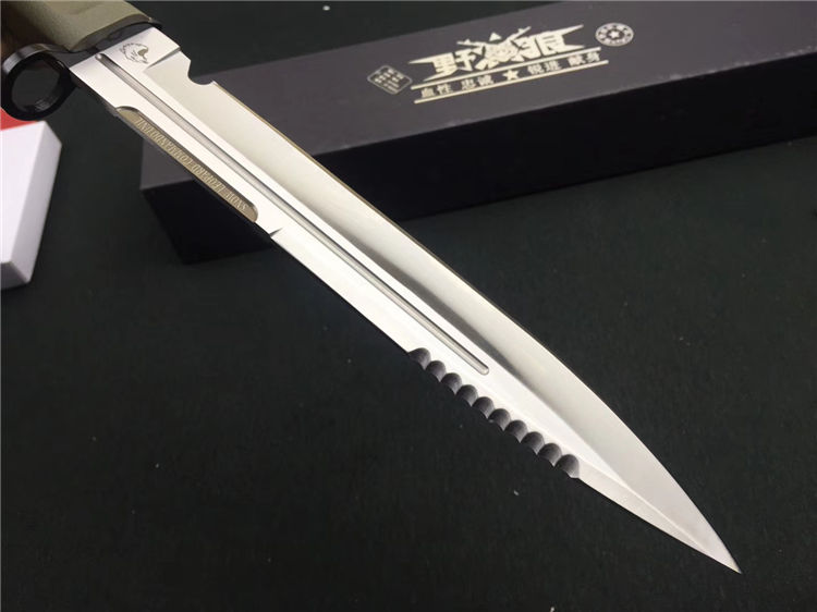 附带pu皮刀套 全开锋、特别锋利,削纸,过水瓶随便弄,当兵、退伍军人,户外探险者的最爱,车载、防身之利器