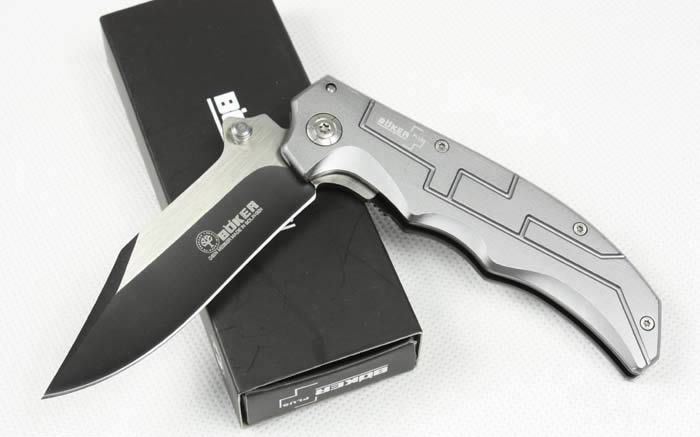 全长:21.5cm 刃长:9.5cm 刃宽:2.5cm 闭合:12cm 刃厚:0.28cm 钢材:440C 硬度:56-58 净重:110g 柄材:金属铝 锁型:侧锁 包装:彩纸盒 产地:国内代工