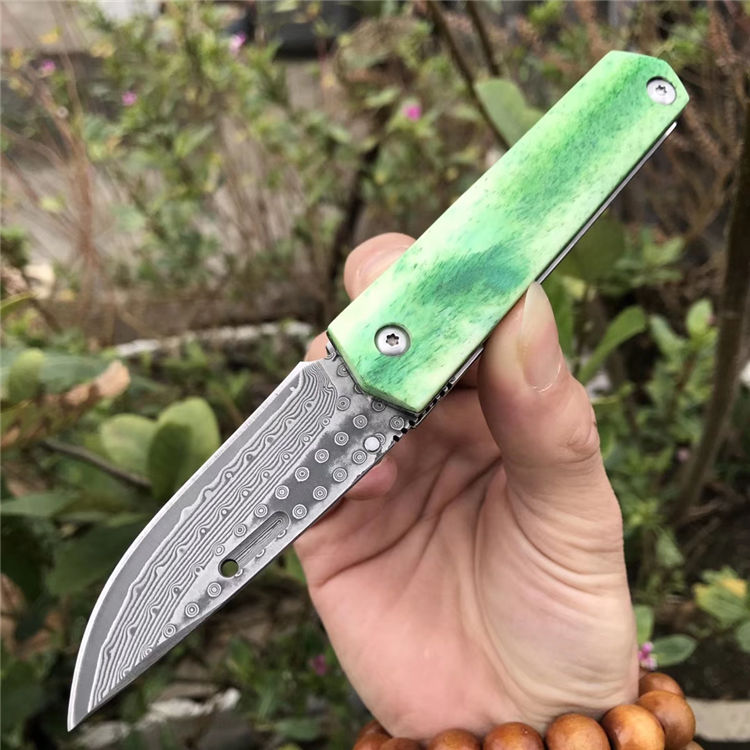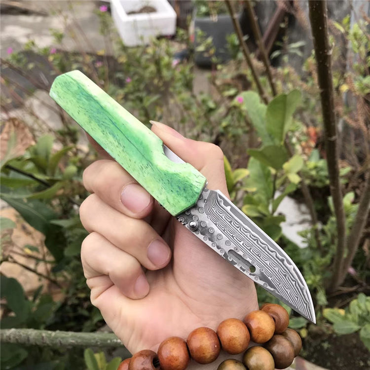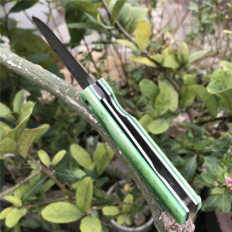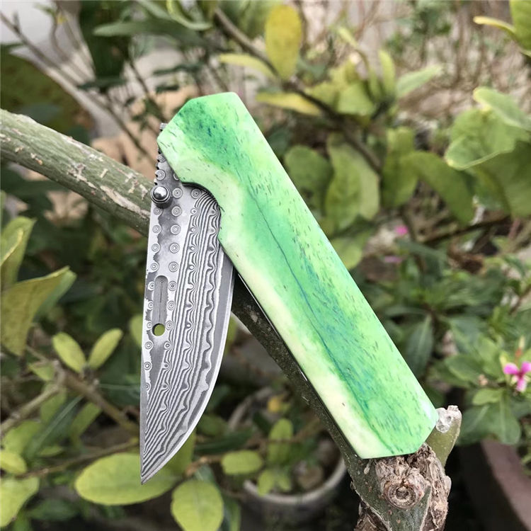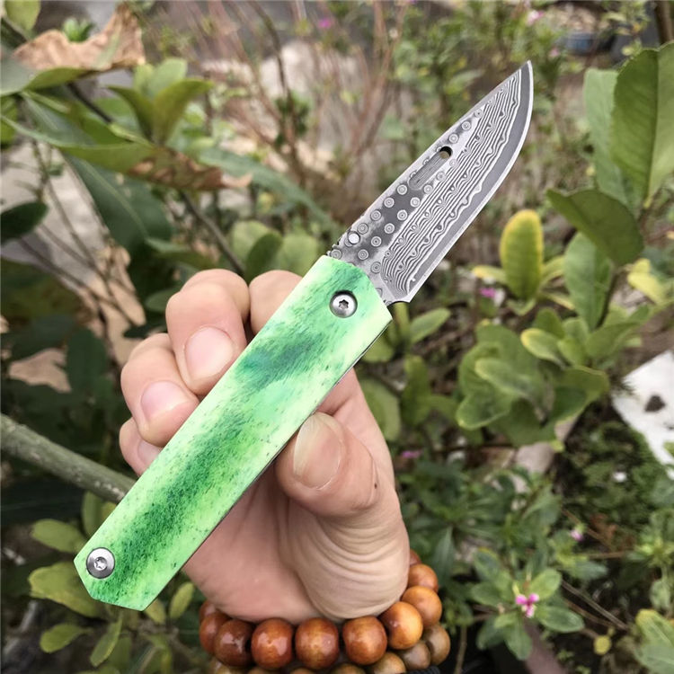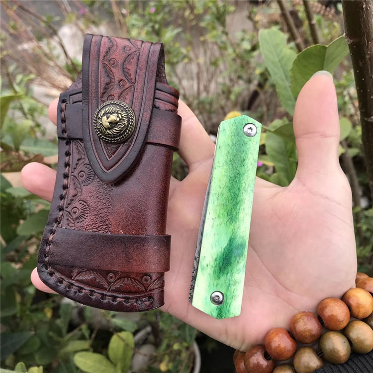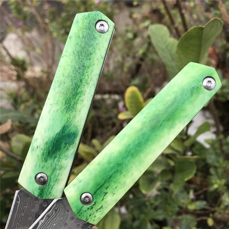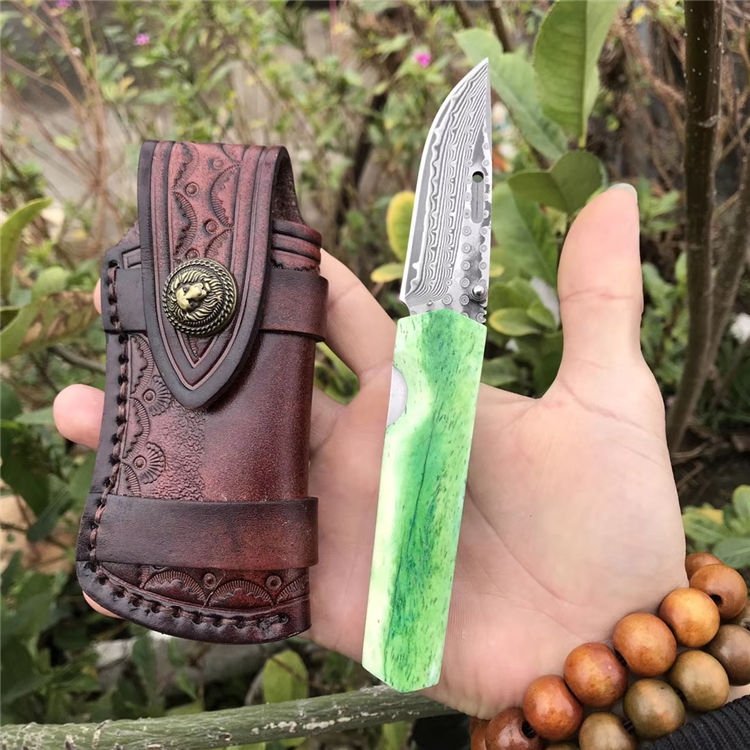 高端定制出口日本【花田洋曙光】国内隆重上市,绿油油牛骨手柄生机盎然,新颖帝王绿光,闪耀,卖相劲暴眼球,大师作品,彩用日本进口Vg10锻打大马士革钢(67层)打造,硬度58-60HRC,表面小玫瑰蔓藤纹,双面花田洋窝槽设计,极度锋利,手柄染色绿牛骨,钢底骨加固,手柄打磨光滑,手感沉甸甸的,性价比极高,是广大刀友收藏把玩装萌高端宝贝,赠送手工雄狮皮套