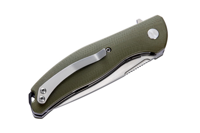 长风熊头1810快开折刀 类型:轴承快开 刀刃:5Cr15MoV HRC:56±1o 刃厚:3.0mm 表面:沙光 手柄内衬:2.0mm不锈钢减重内片 手柄:黑色G10\绿色G10\色G10 刃长:88mm 总长:195mm 重量:115g