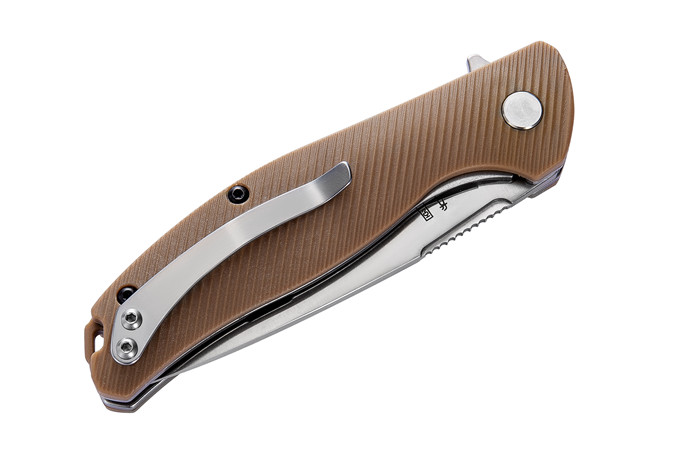长风熊头1810S快开折刀 型号:CF1810SBLK\CF1810STAN 类型:轴承快开 刀刃:420不锈钢 HRC:53±1o 刃厚:3.0mm 表面:沙光 手柄内衬:2.0mm不锈钢减重内片 手柄:黑色纤维尼龙/泥色纤维尼龙 刃长:88mm 总长:195mm 重量:115g