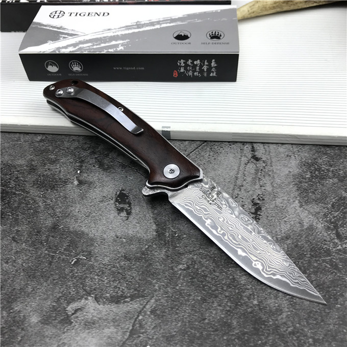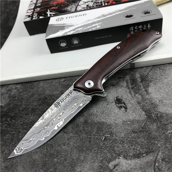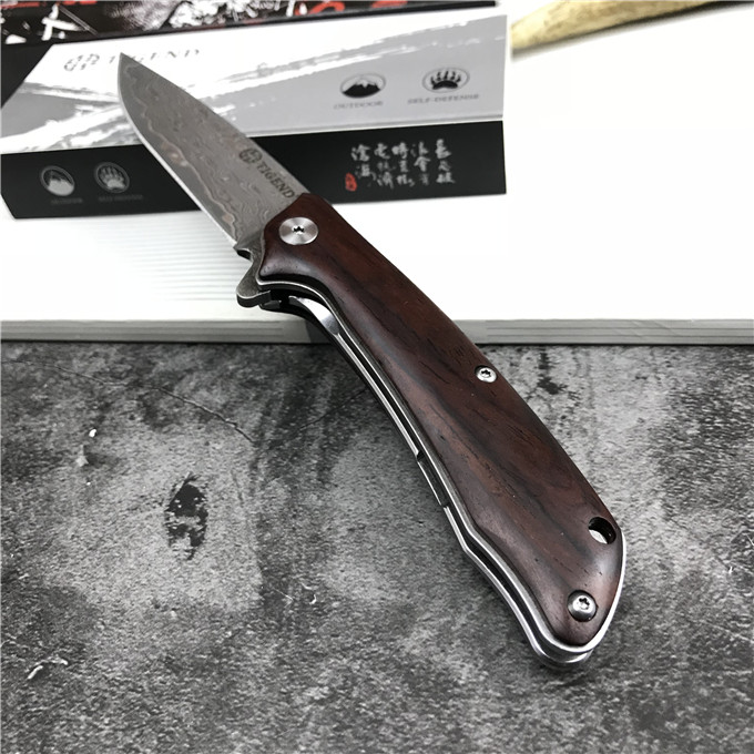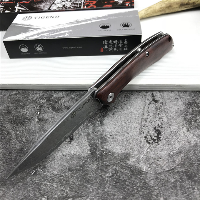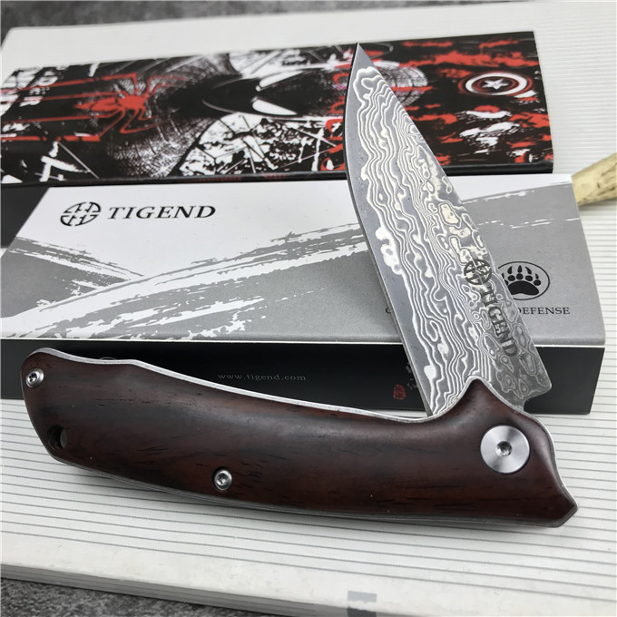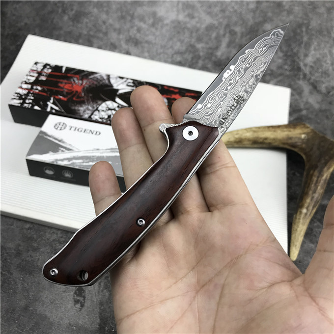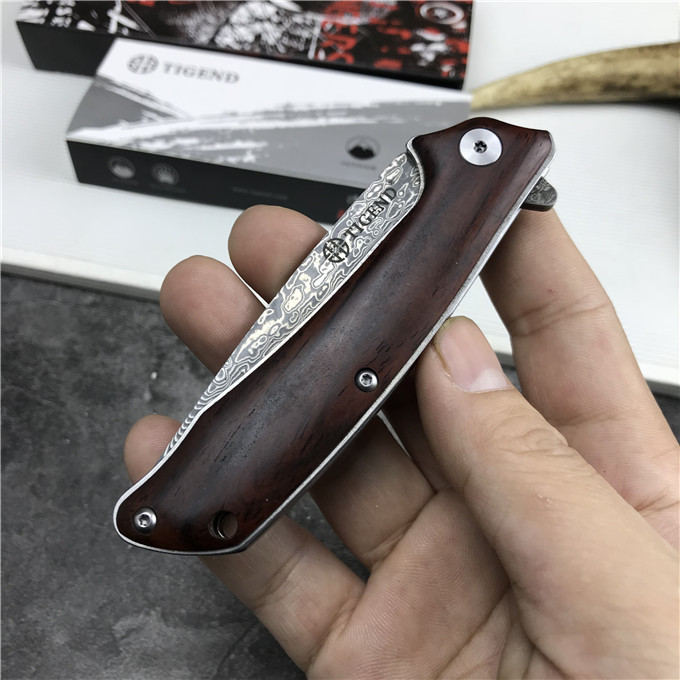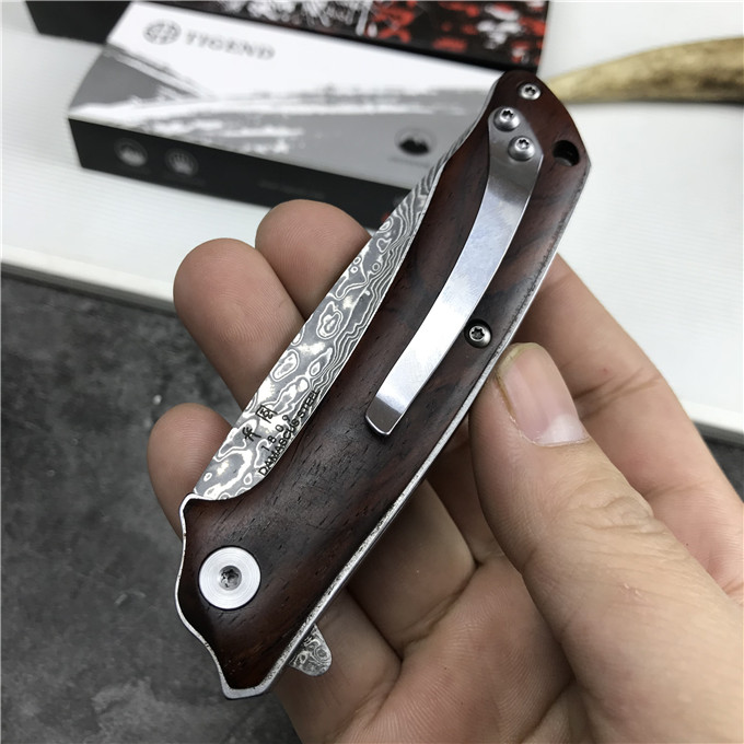 大马士革长风雄狼折刀 型号:1809DM 类型:轴承快开 刀刃:大马士革钢 HRC:59o±1o 刃厚:3.0mm 表面:酸洗氧化 手柄内衬:2.0mm不锈钢减重内片 手柄:红檀木 刃长:70mm 总长:180mm 重量:82g