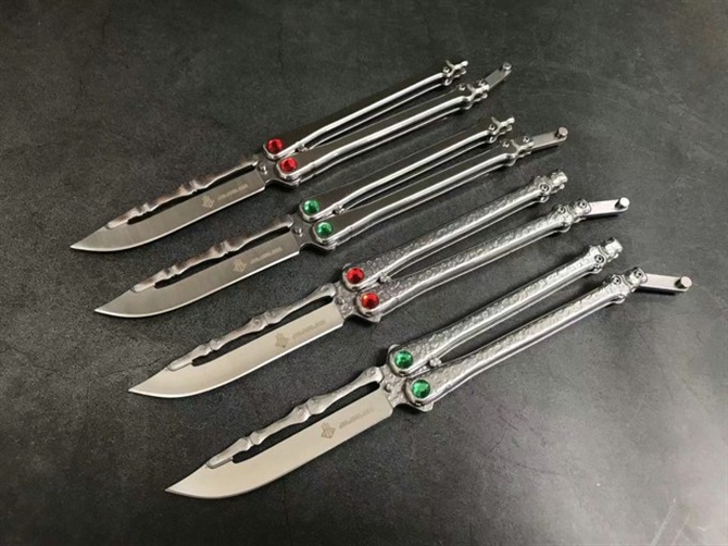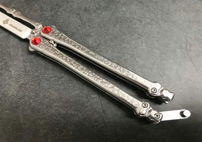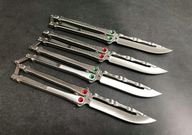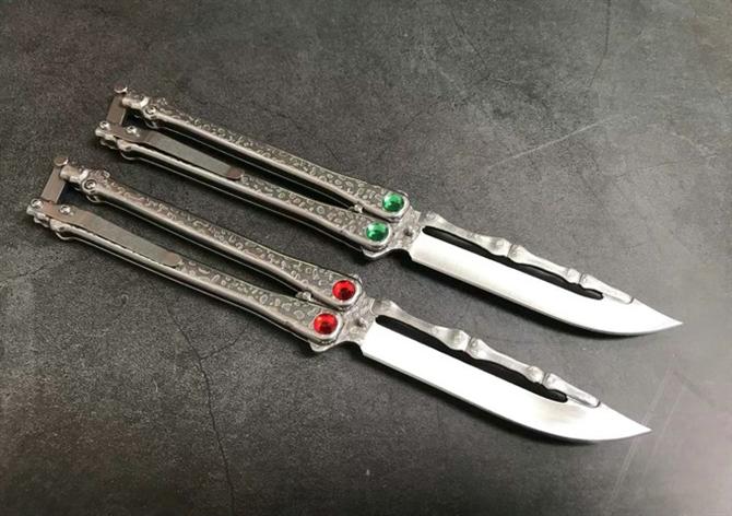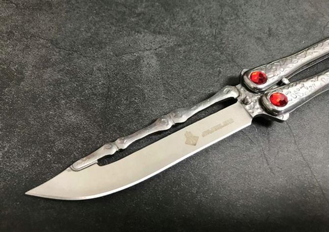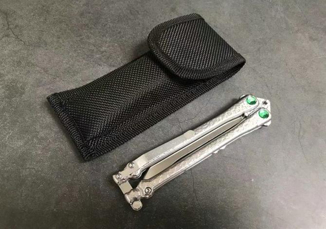 JL-23A甩刀 全长:21CM(打开) 刃长:0.9CM 刃厚:0.3CM 刃材料:420 材柄:420 硬度:58 重量:180克 刀鞘刺绣尼龙刀鞘 铸钢柄镂空,压弹出刀 包装高级纸盒
