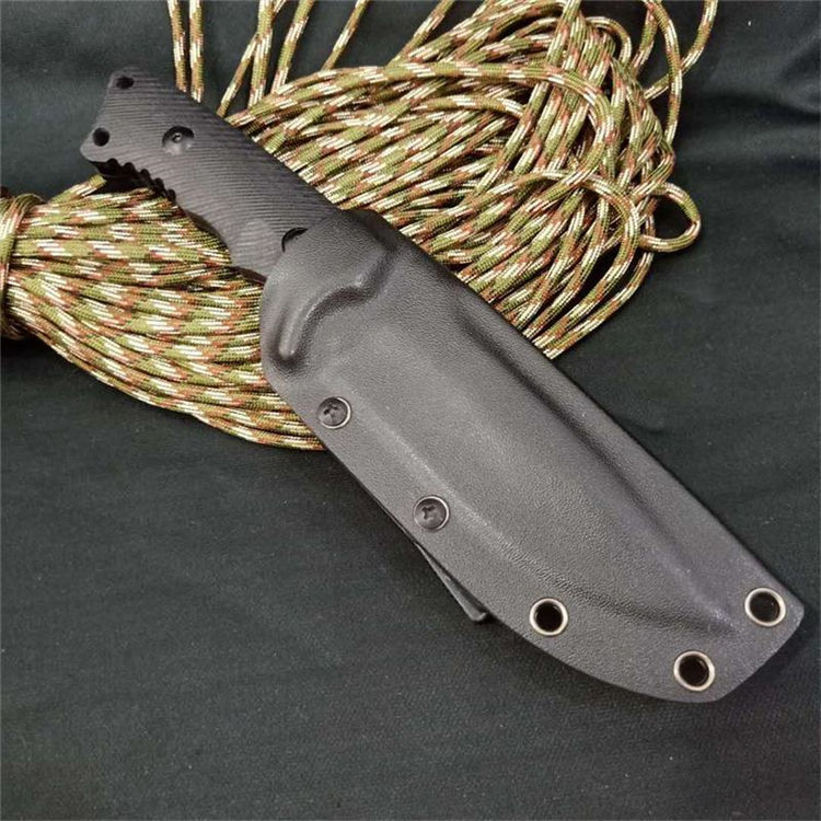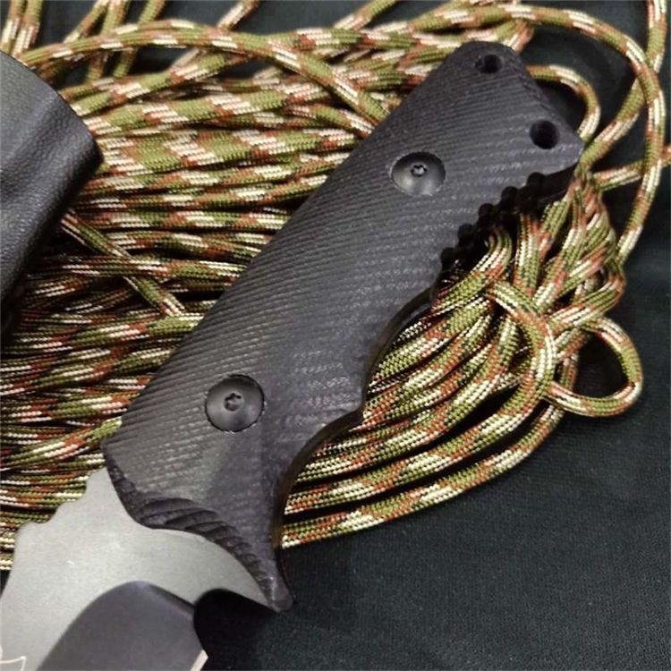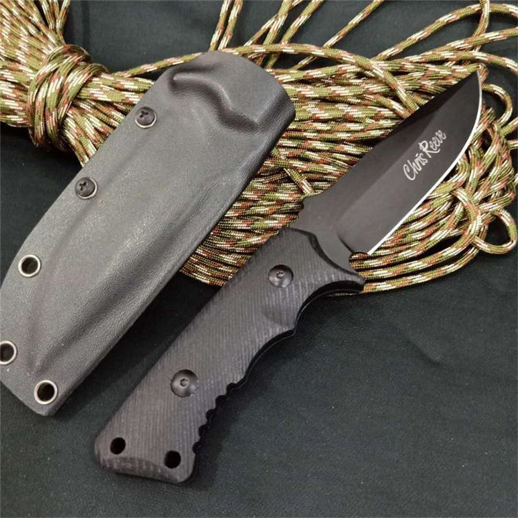 克里斯夫战术直刀 全长:24cm 刃长:11cm 柄长:13cm 刃宽:3cm 刃厚:0.4cm 刃材:5cr15 重量:300g 硬度:58HRC 表面:沧桑石洗 柄材:黑色G10 刀套:k鞘
