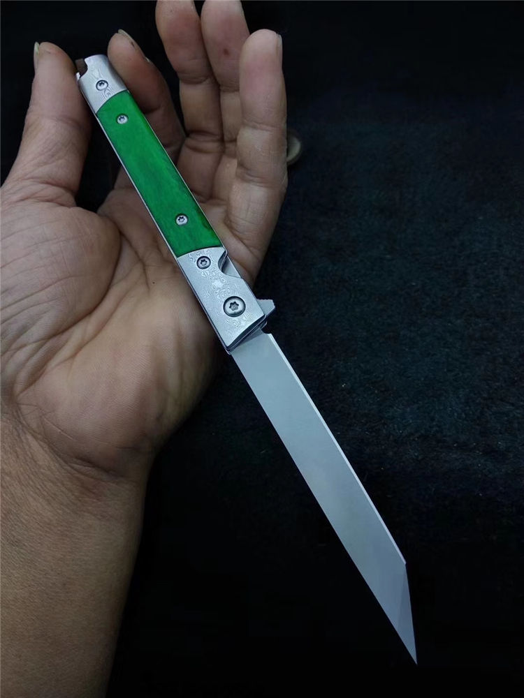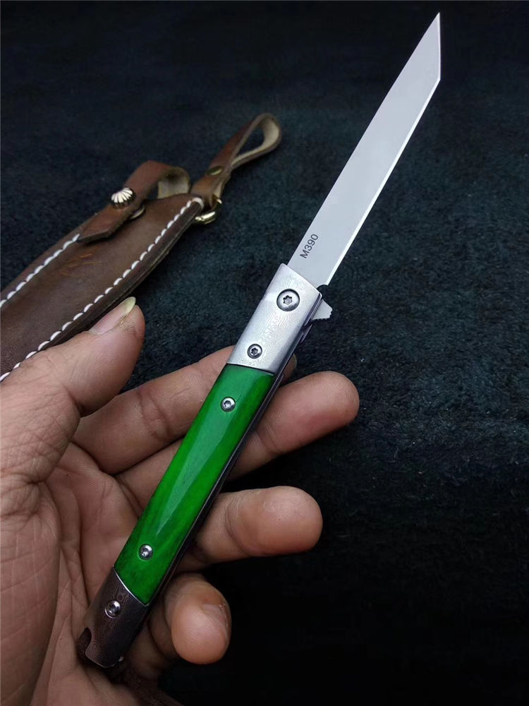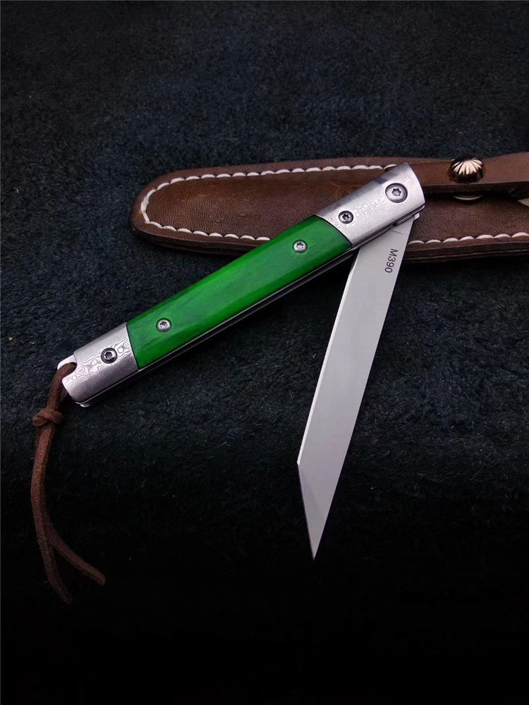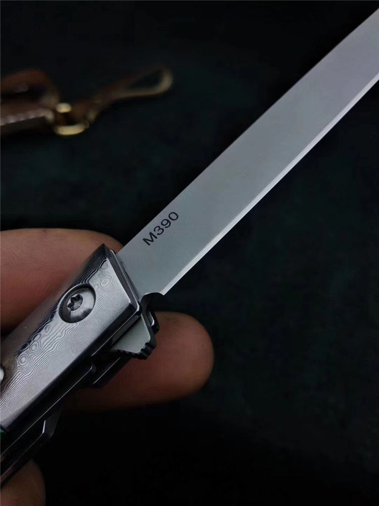 马良神笔M390折刀 总长:200mm 刃长:90mm 刃厚:2.6mm 刃宽:13mm 硬度:60-61HRC 搭配翡翠质感骨片和大马士革钢双钢头,陶瓷滚珠轴承快开系统,自主设计开发,刀刃选用奥地利M390粉末钢,中轴配置两颗进口陶瓷轴承结构,开合顺畅。专业真空深冷热处理,高温油淬回火,硬度达到60-61HRC。配置手工缝线头层牛皮刀鞘