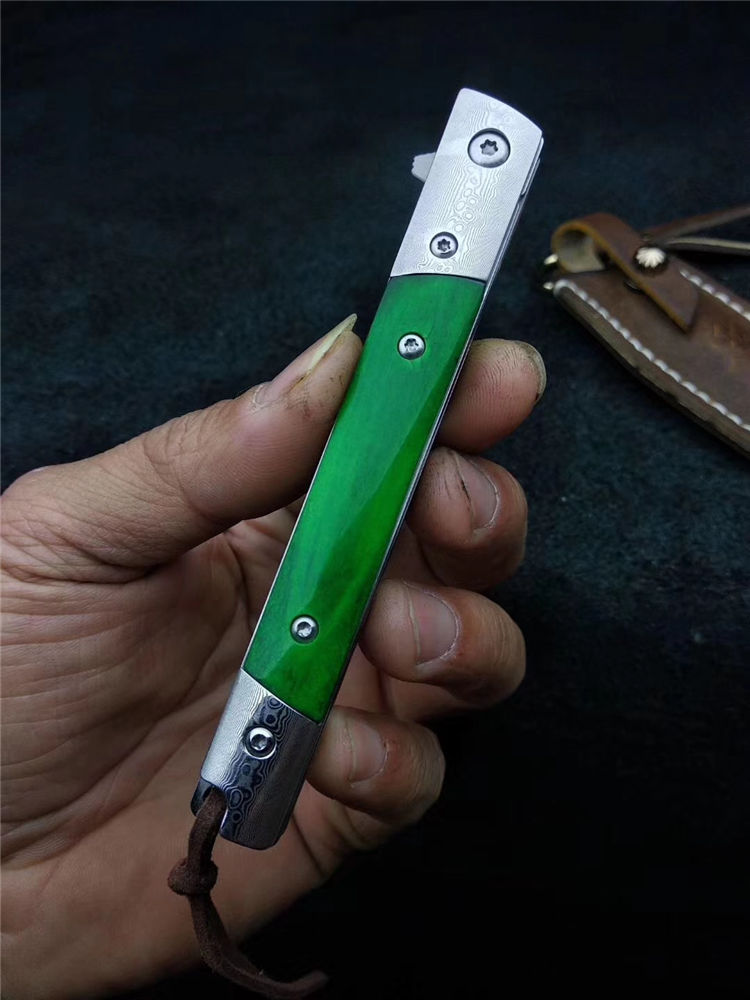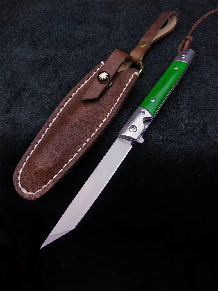 搭配翡翠质感骨片和大马士革钢双钢头,陶瓷滚珠轴承快开系统,自主设计开发,刀刃选用奥地利M390粉末钢,中轴配置两颗进口陶瓷轴承结构,开合顺畅。专业真空深冷热处理,高温油淬回火,硬度达到60-61HRC。配置手工缝线头层牛皮刀鞘