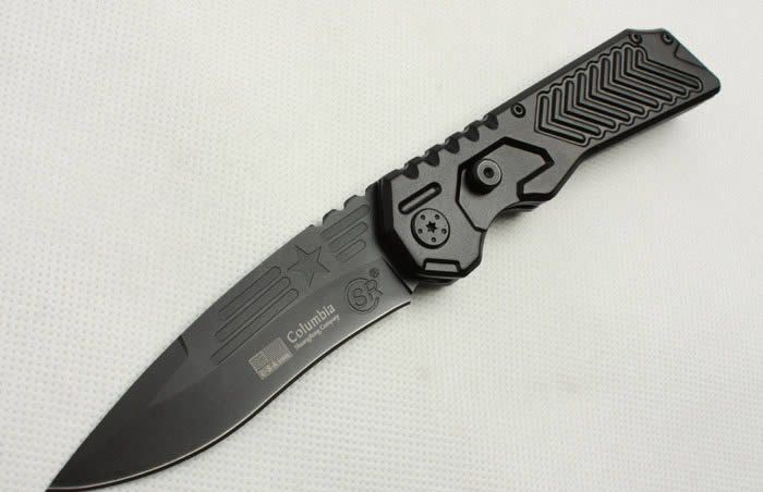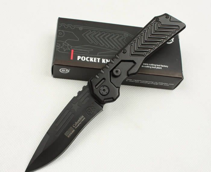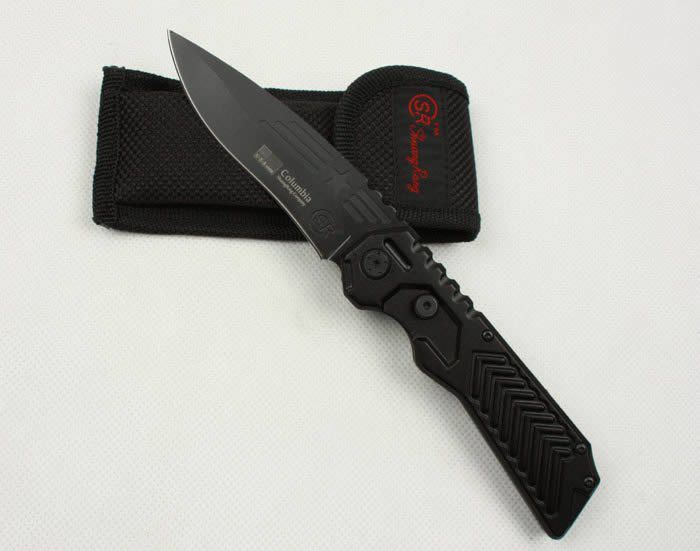 SR488花纹折刀 全长:21.7cm 刃长:9.5cm 柄长:12cm 刃宽:3cm 刃厚:2.8mm 钢材:420 硬度:57HRC 重量:180克(含包装) 表面:发黑 柄材:铝片 锁型:侧锁 包装:彩盒+牛津袋