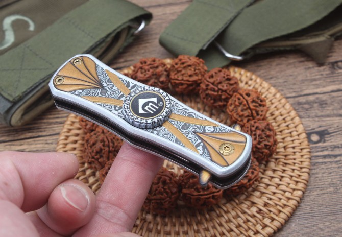 其他:配彩盒.打开刀是折刀,收刀回是陀螺,两体合一,是款不错的折刀