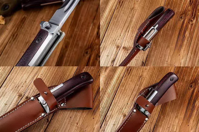 刀柄的刀背一侧有一长连接槽,槽内有卡笋。刀柄前部的横挡护手只向刀刃一侧伸出,横挡护手上有一按钮,用它可控制连接槽内的卡笋。装枪时,从后向前推刺刀,使VZ/58式突击步枪准星罩下方的长条连接块卡入刀柄上的连接槽内,直至槽内卡笋弹起卡到连接块的前面,刺刀便牢靠地固定在步枪上。此连接方法独特且简单,但拼刺时作用力完全集中到卡笋上,卡笋有可能因变形过大而解脱。该刺刀的刀鞘用皮革缝制,打有铆钉。上面装有搭环和按扣以保证刺刀牢靠定位。挂剑圈和刀鞘成一角度,便于快速抽出刺刀,捷克VZ58,用于VZ58步枪,产量很少的小刺刀