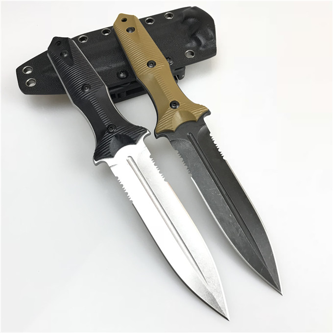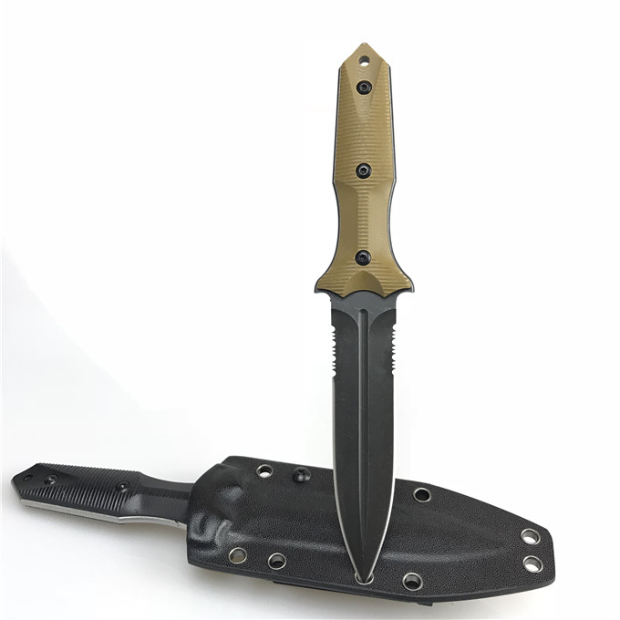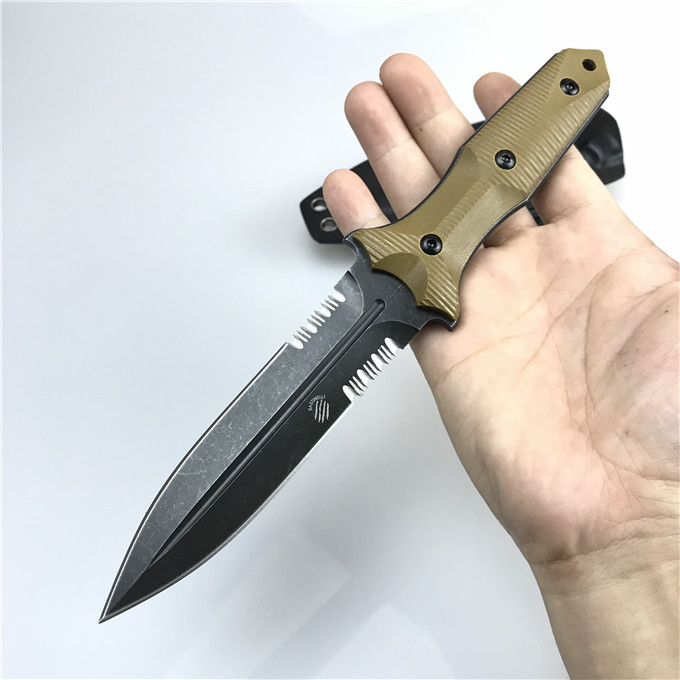 Bastinelliknives意大利巴斯蒂内利BastinelliGrozoDaggerG10柄双齿刃战斗刀,BastinelliKnives工作室由法国刀匠BastienCoves创立,这是属於他个人手工刀之品牌,大厂牌如LionSteel与FoxKnives都与他联名合作,其中又以FoxKnives刀厂关係最深,因次Bastinelli的厂刀(industrialknives)就由Fox製造。BastinelliKnives的logo就是四条爪痕,充满血性的意念,BastinelliGrozoDagger棕色G-10柄平刃双刃直刀是2018年最新由FoxKnives在意大利製造,刀身以D2钢製造石洗处理,符合人体工学的握柄採用黑色G10防滑3D纹路,此款刀已对称剑形设计,极具攻击力及战斗力,设计流畅,是非常适合军警人员使用,随刀附KYDEX刀鞘方便携带