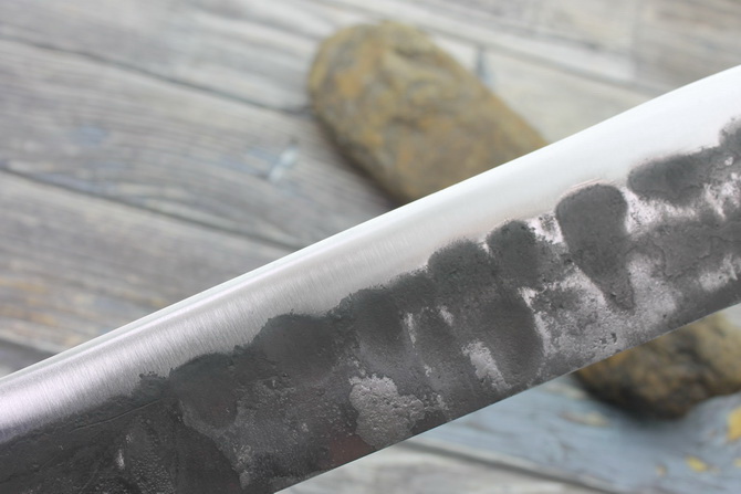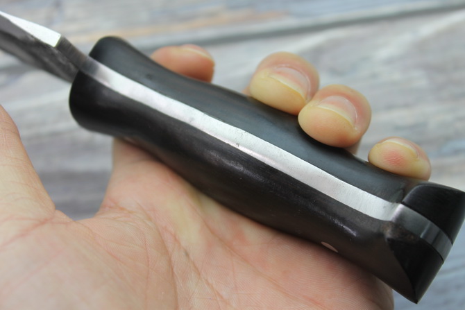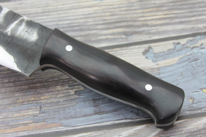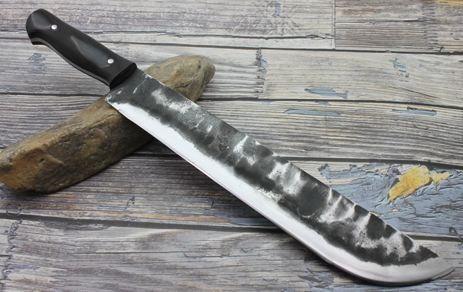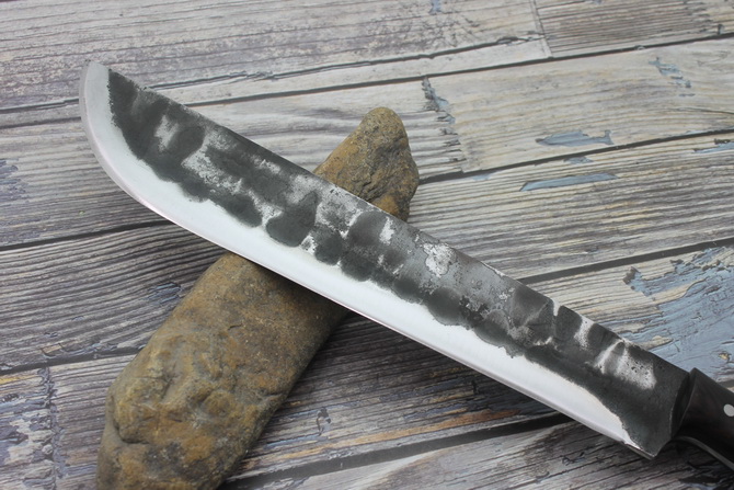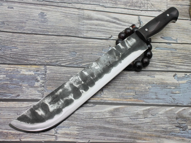 越战15度丛林刀 总长:41cm 刃长:30cm 柄长:11cm 刃厚:4mm 刃材:俄罗斯高速钢 刃宽:5.3cm 硬度:61HRC 手柄做工/材质黑檀木 全程手工打做,手工开刃,锋利无比,收藏极品之一、喜欢的朋友不可错过 备注:无刀套