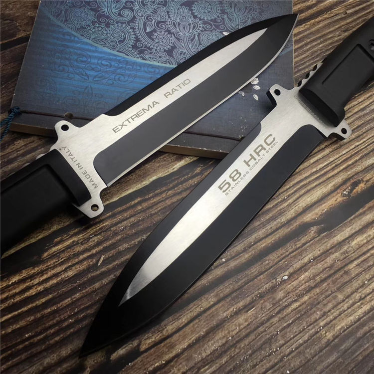 极端武力黑魂直刀 刃材:7CR13钢 全长:33CM 刃长:20CM 刃厚:0.5CM 刃宽:3.7CM 硬度:58HRC 柄材:热塑性弹性橡胶 刀鞘:ABS 重量:350克