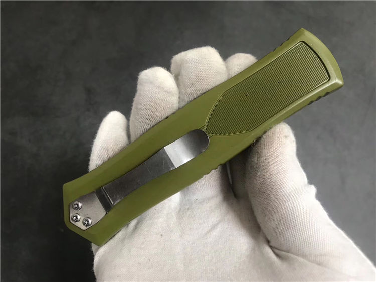 MICROTECH微技术857鬼直出跳刀 类型:直出弹簧刀 品牌:MICROTECH微技术 开启长度:23.4CM 合起长度:13.3CM 刃长:9.8cm 刃厚:2.9CM 硬度:57 HRC 刃材:440 表面:刀刃发黑伴拉丝 把手: 锌铝合金 净重:300克(整刀) 毛重:450克(含包装物) 开合:双动作,直推开关,自动弹出和收回 包装:耐磨专用战术尼龙套 口袋刀夹:弹簧刀夹 玻璃敲击器:钨质玻璃敲击器